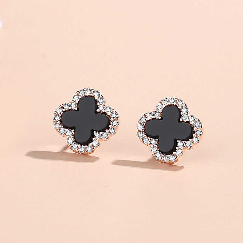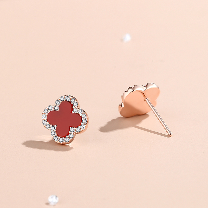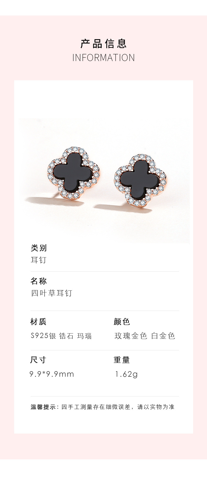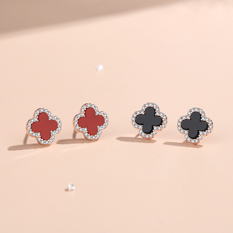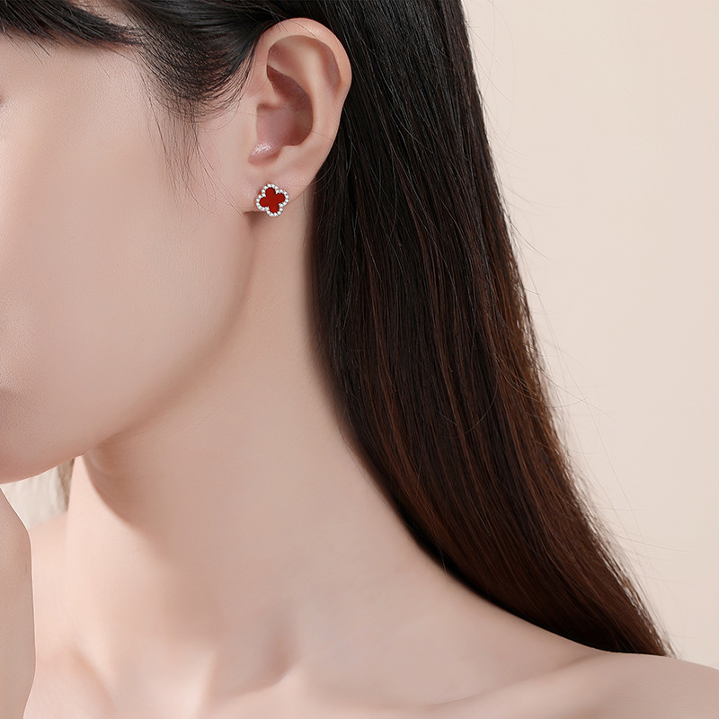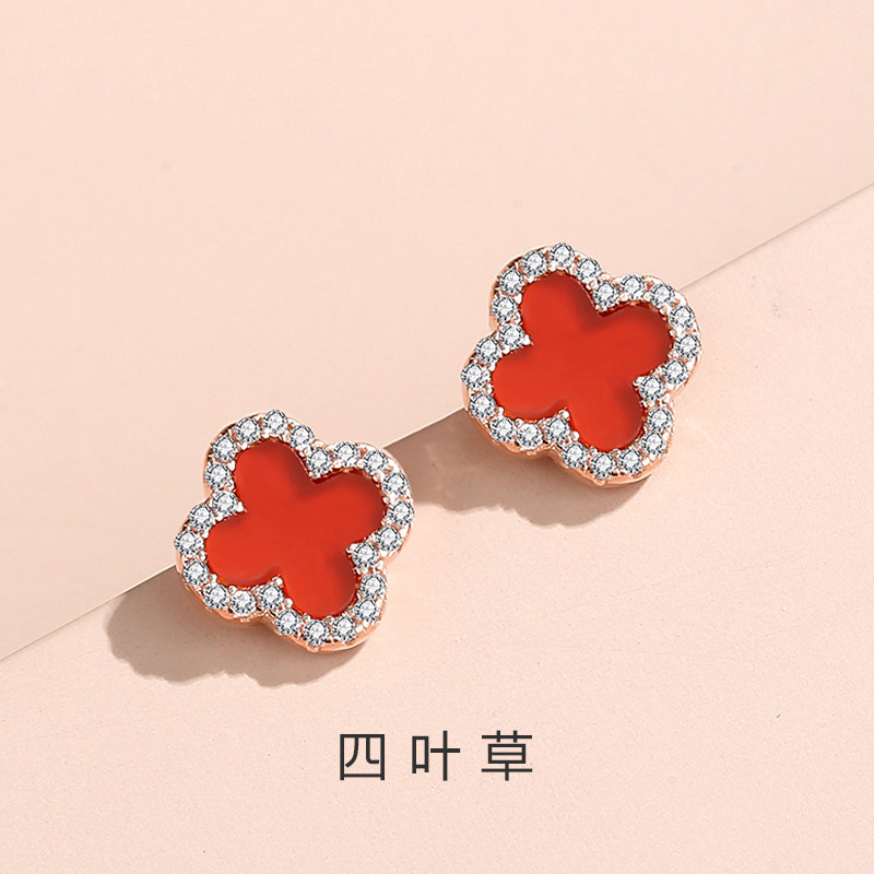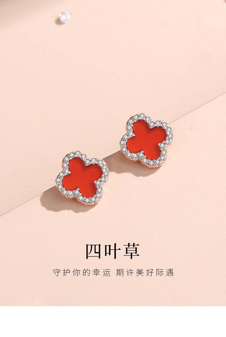子佩集【玛瑙四叶】925纯银四叶草玛瑙耳钉【JHY-E000289M】