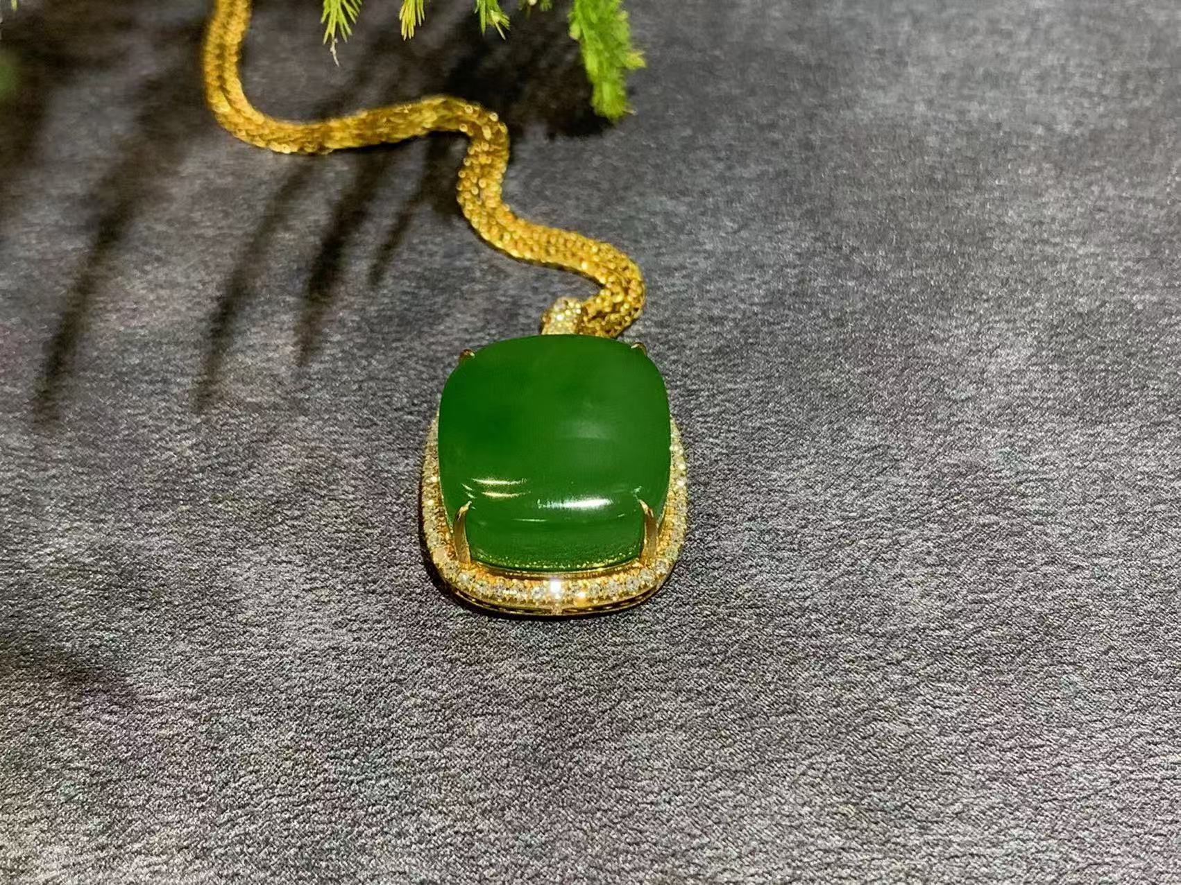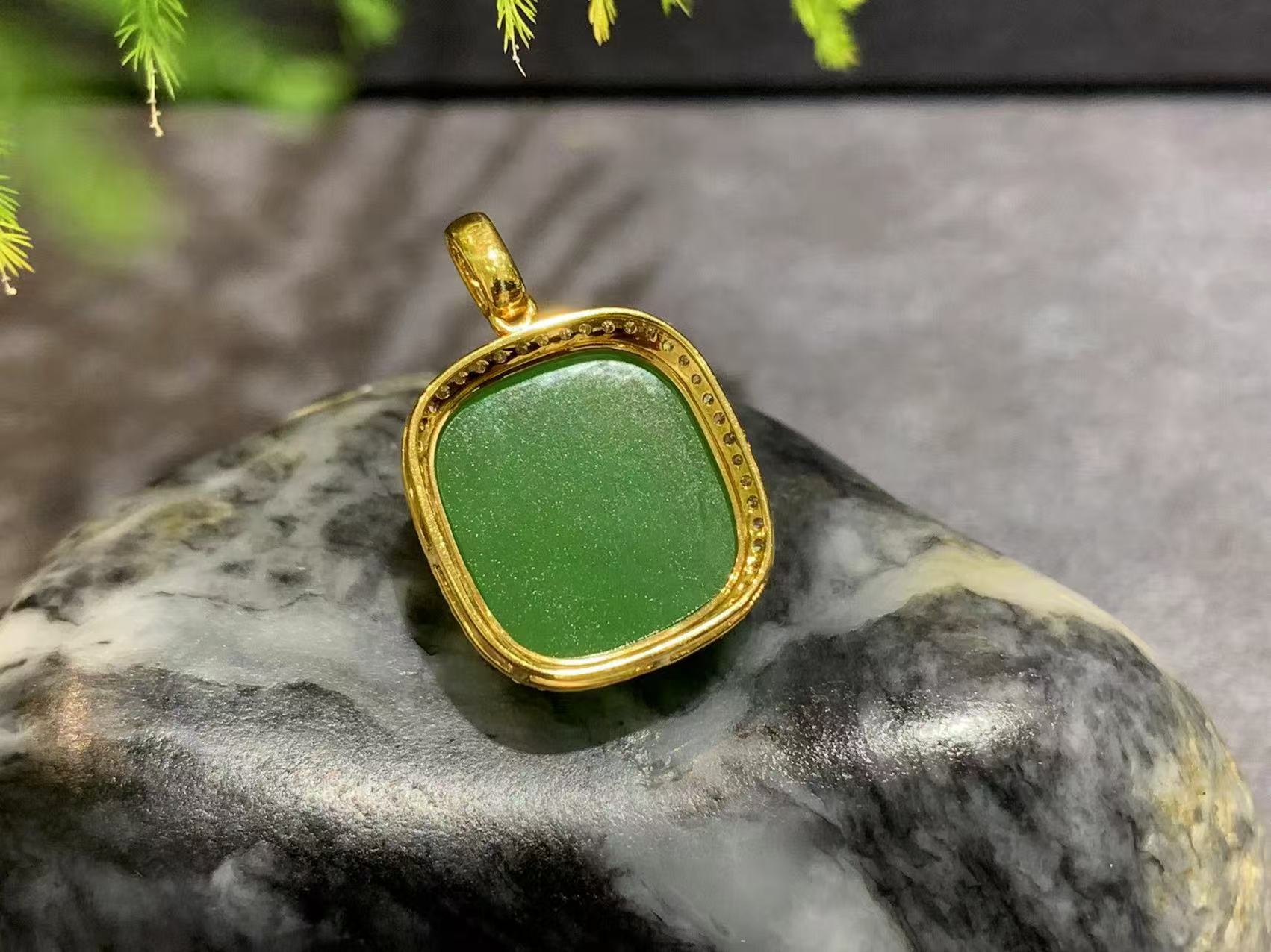 【御珠宫坊】新疆黑羊洞金镶碧玉吊坠