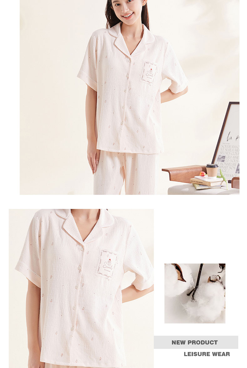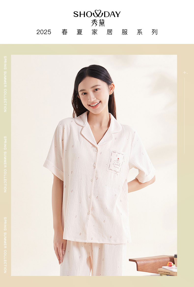 【79元限时秒杀】【秀黛】女翻领印花杯垫短袖套装女夏季家居服睡衣S2551037T【门店同款】