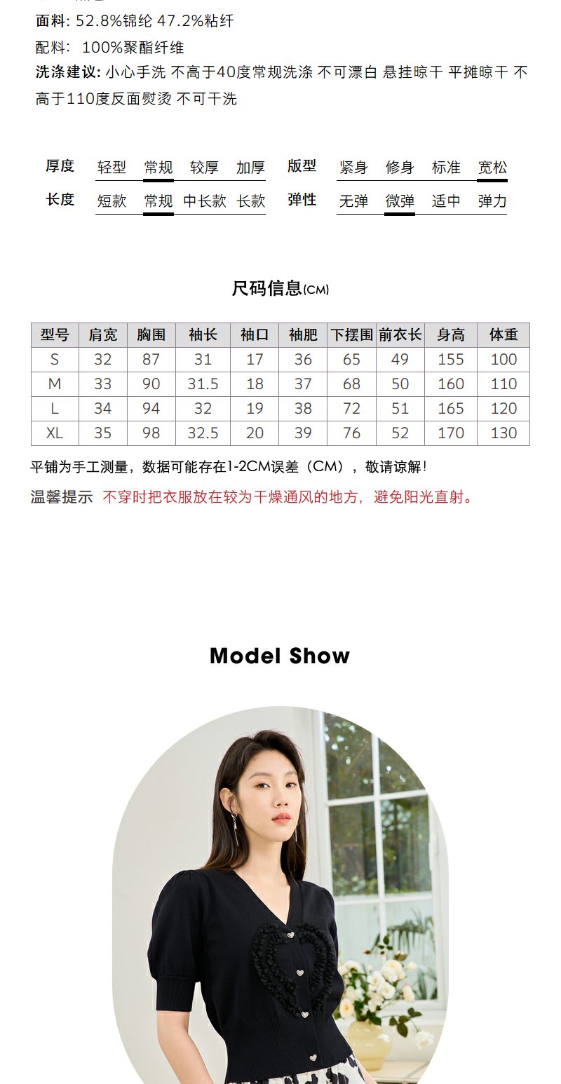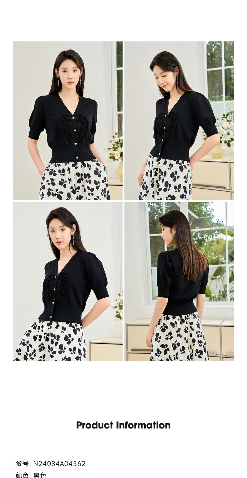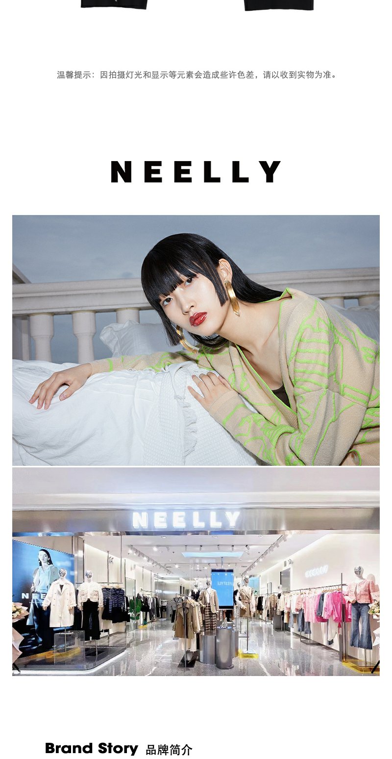 NEELLY纳俪商场同款v领针织衫黑色泡泡袖2023今年流行漂亮上衣女N24034A04562
