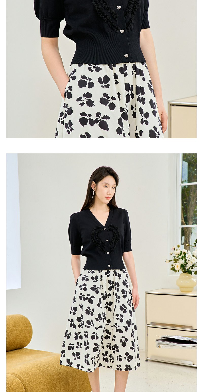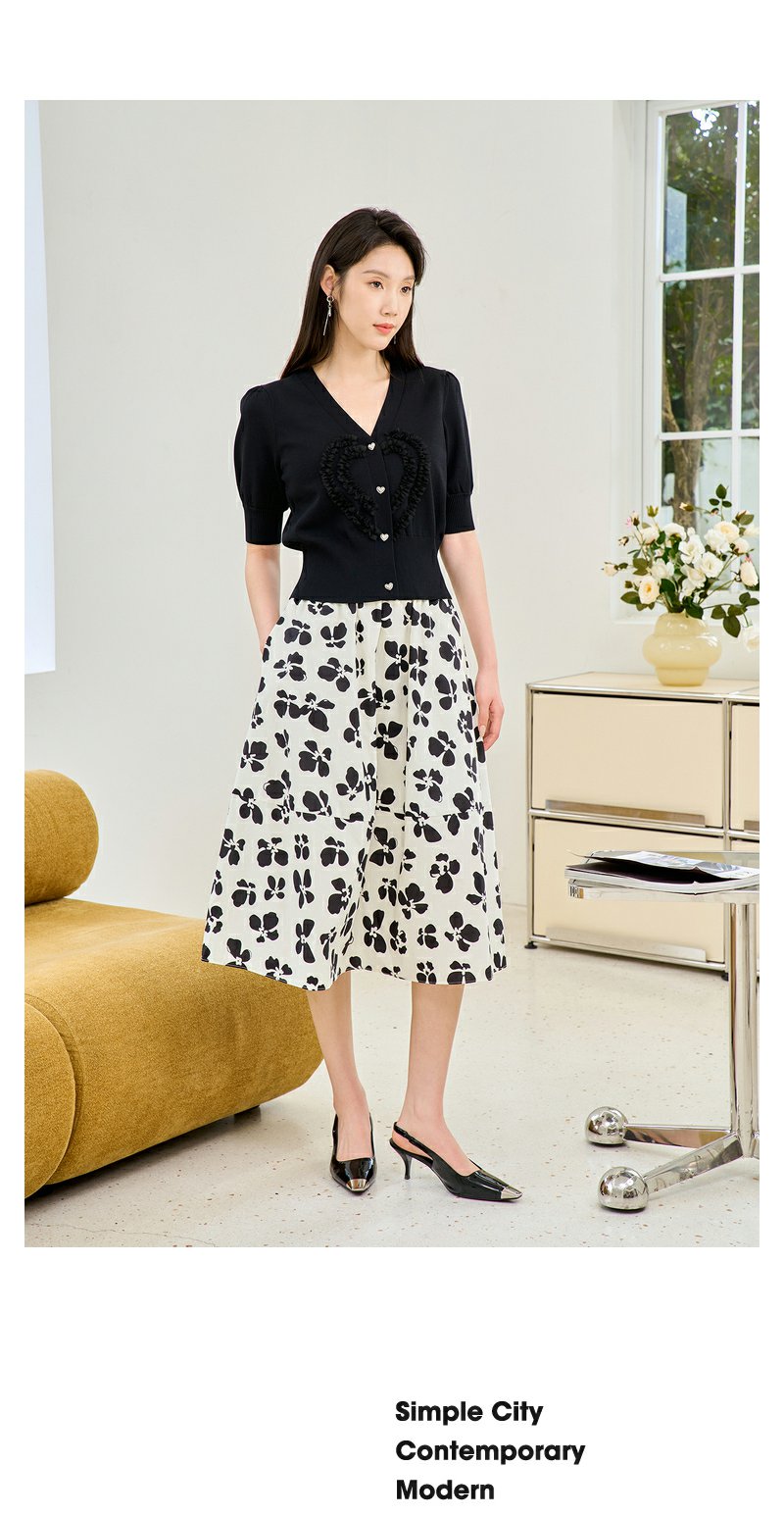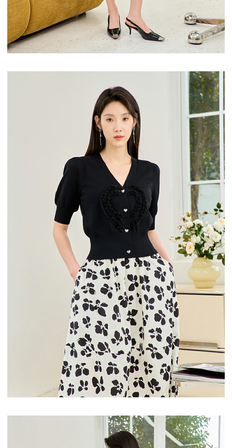 NEELLY纳俪商场同款v领针织衫黑色泡泡袖2023今年流行漂亮上衣女N24034A04562