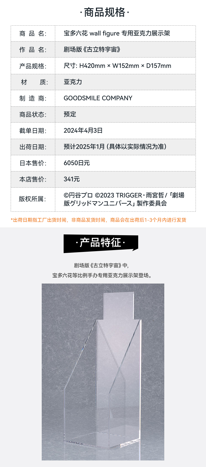 【GSC现货】1/7 宝多六花 wall figure/专用亚克力展示架