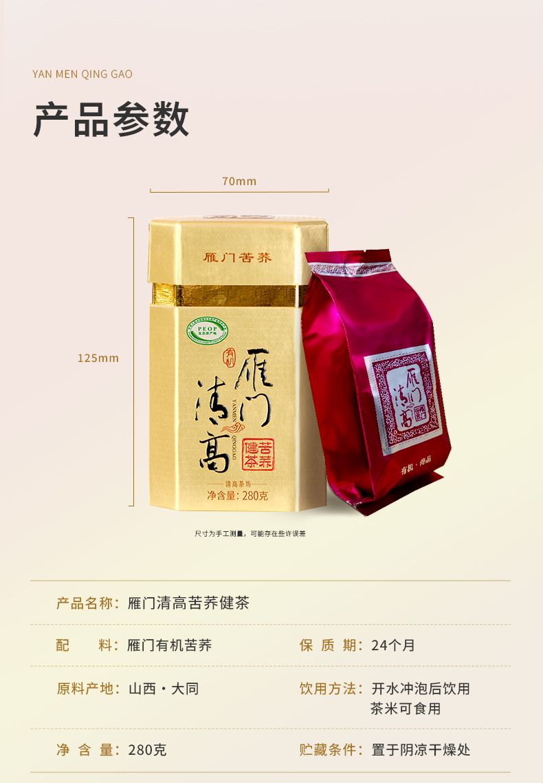 雁门清高 有机黑苦荞茶280g山西苦荞茶全胚芽荞麦茶