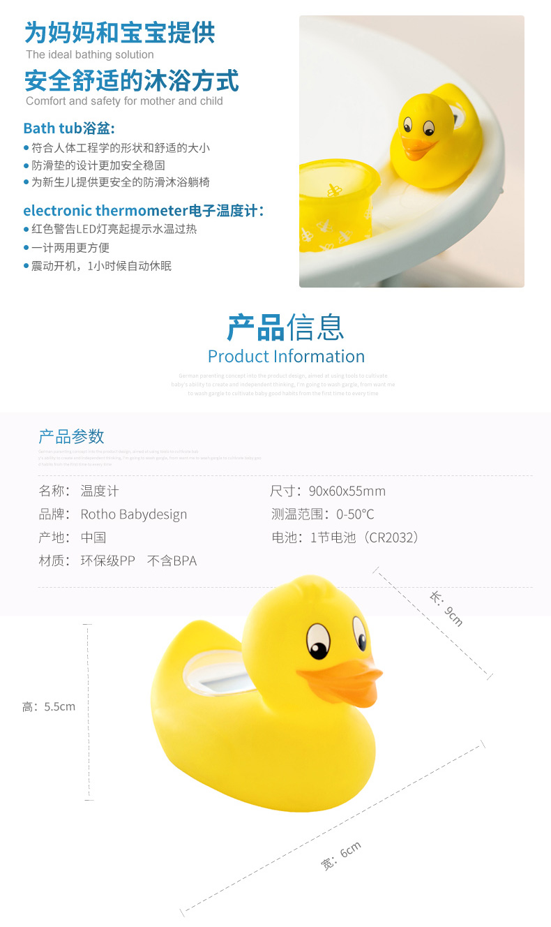 德国Rotho Babydesign 小黄鸭电子水温计室温计