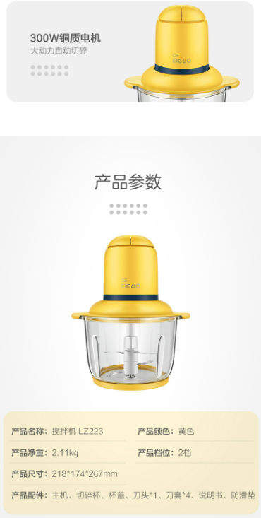 美的(Midea)LZ30E223捣蛋鬼系列绞肉机搅拌机料理机