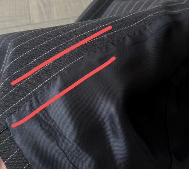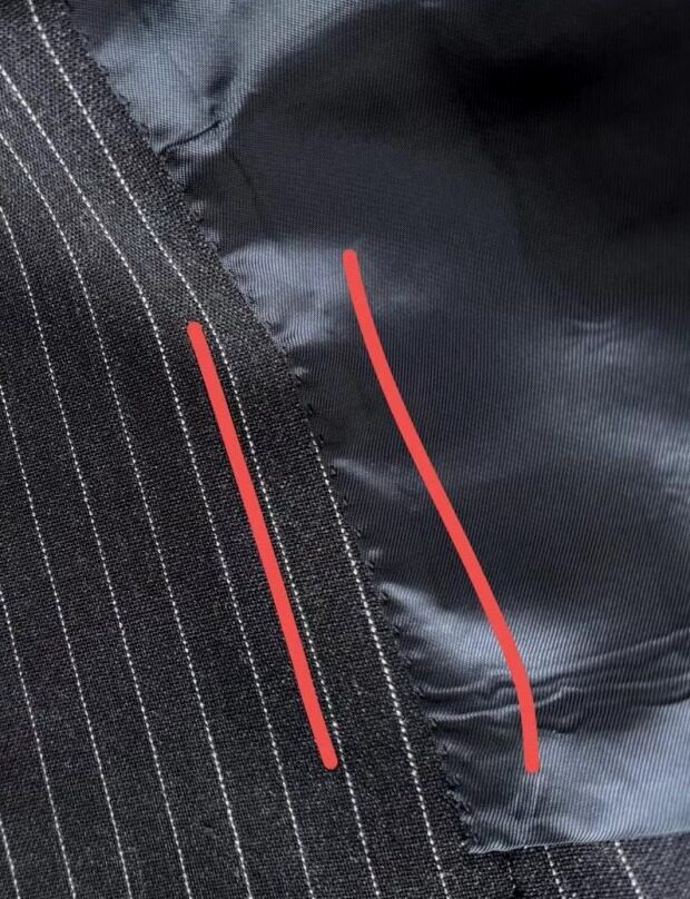袖筒内的条纹里衬 是进口的粘胶纤维 比铜氨丝要硬点厚点