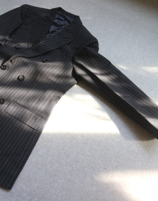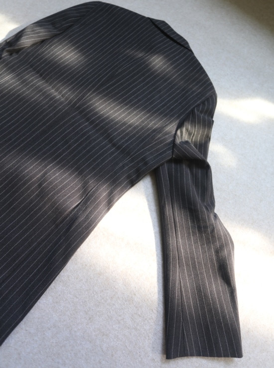46码 肩背微有余量 但有垫肩 所以肩头的视觉感 差别并不大