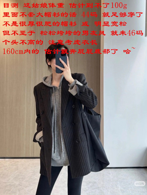 跟我类似身高 体重100g左右的妞 里面不穿帽衫 不要男友风 44码 足够穿