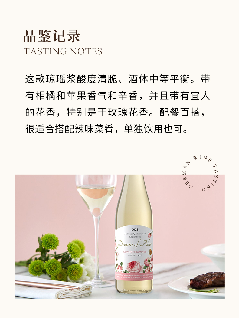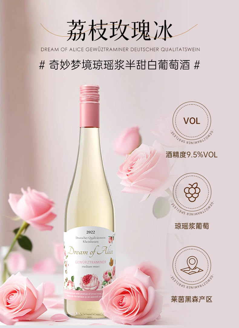 玫瑰荔枝冰奇妙梦境琼瑶浆半甜白葡萄酒750ml 德国进口 A-4017