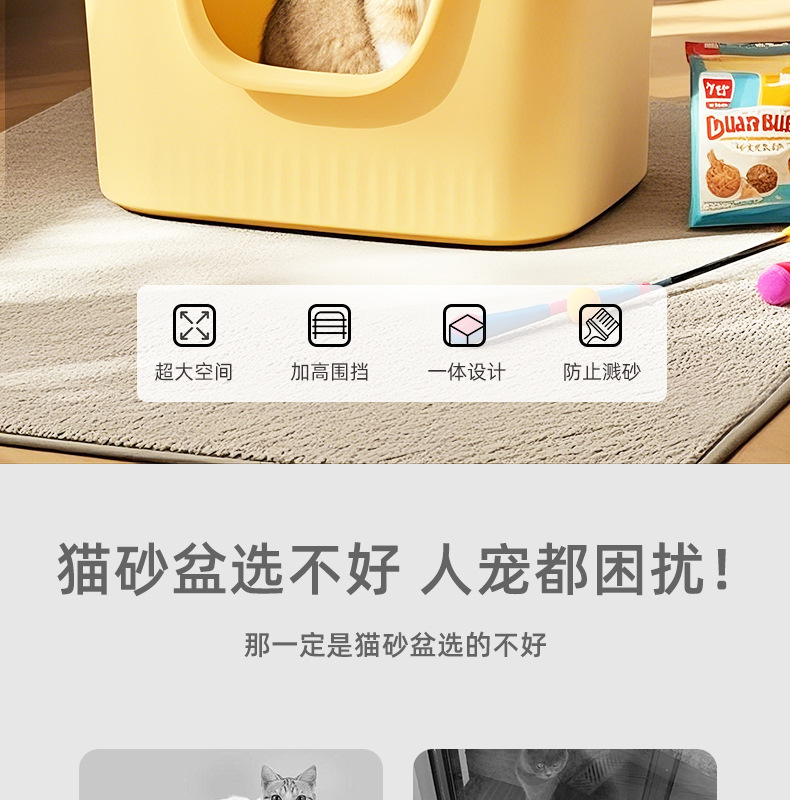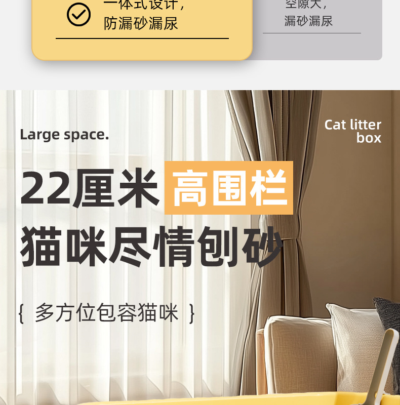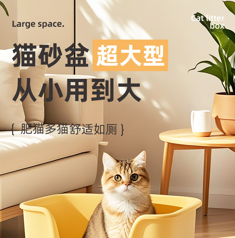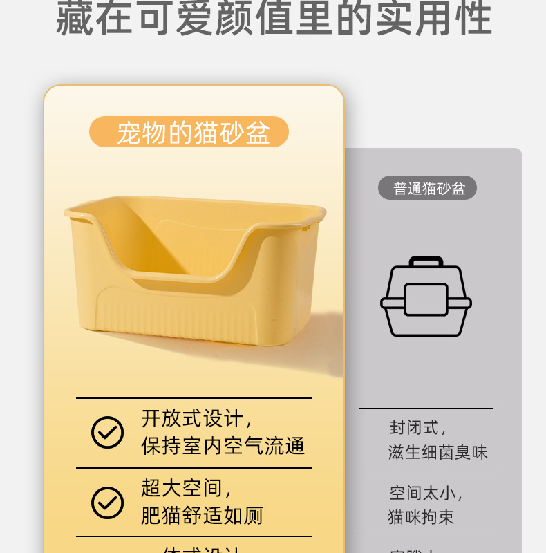 猫砂盆 大号 开放式 加高防外溅 高围栏 猫厕所 猫用品批发