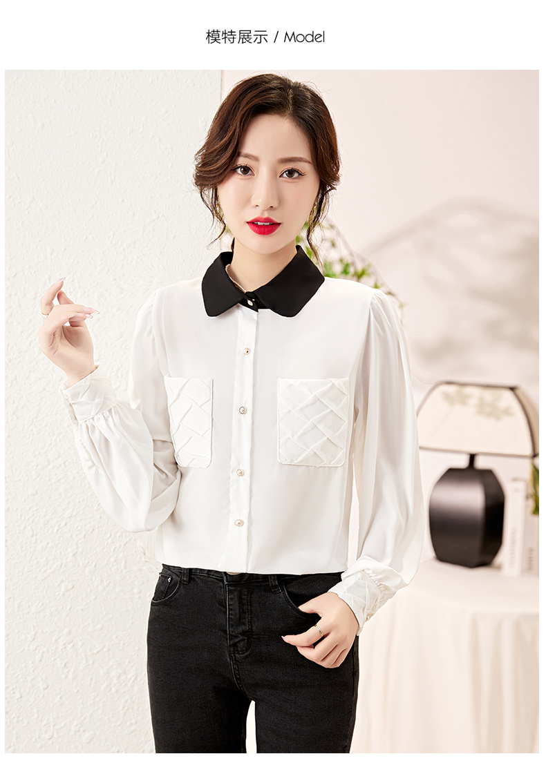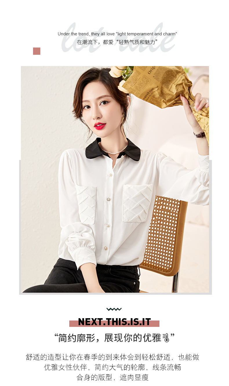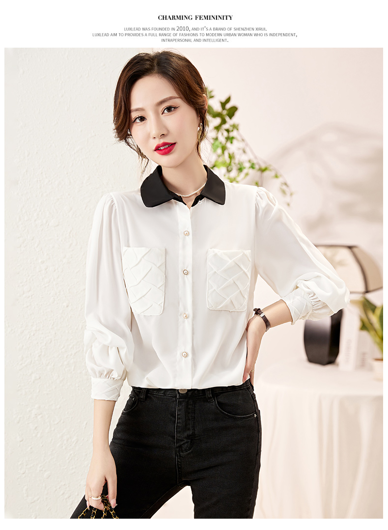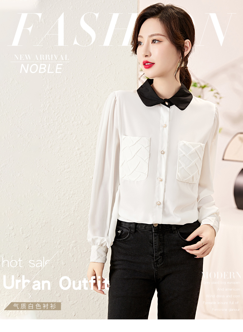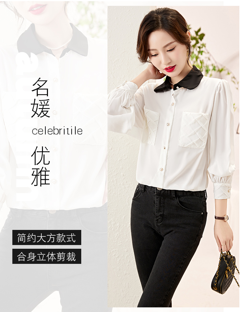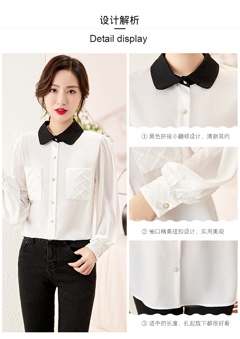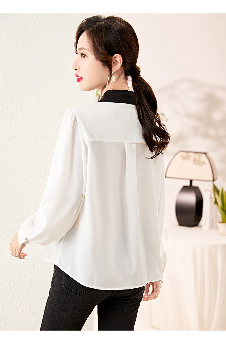 时尚百搭,春季新款休闲气质显瘦拼色翻领雪纺衬衫上衣女HR-JNNS2323-1
