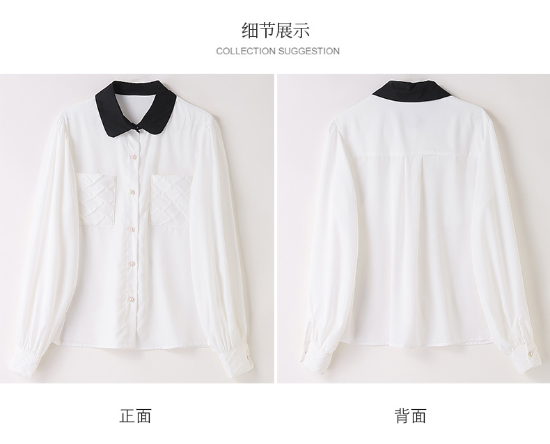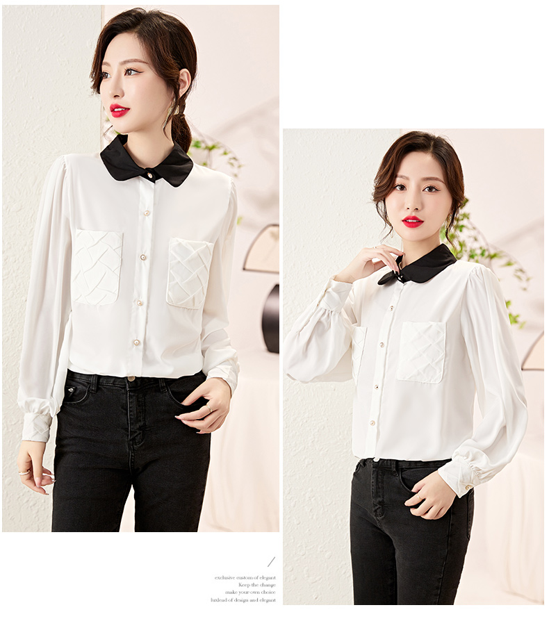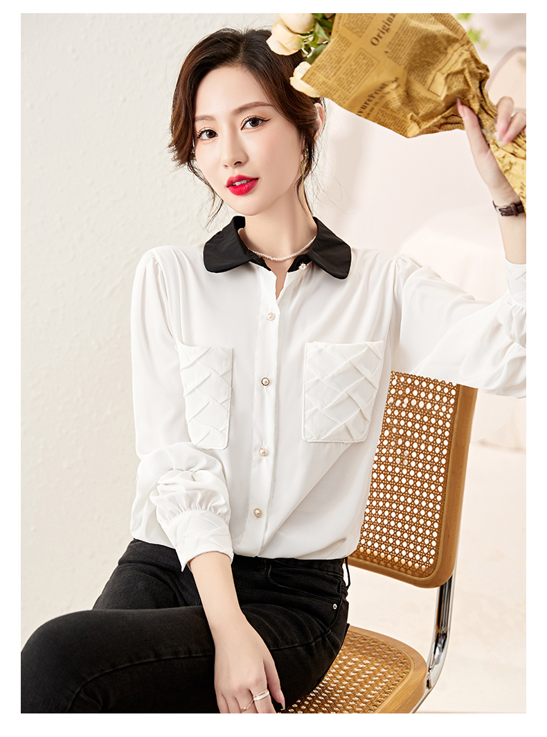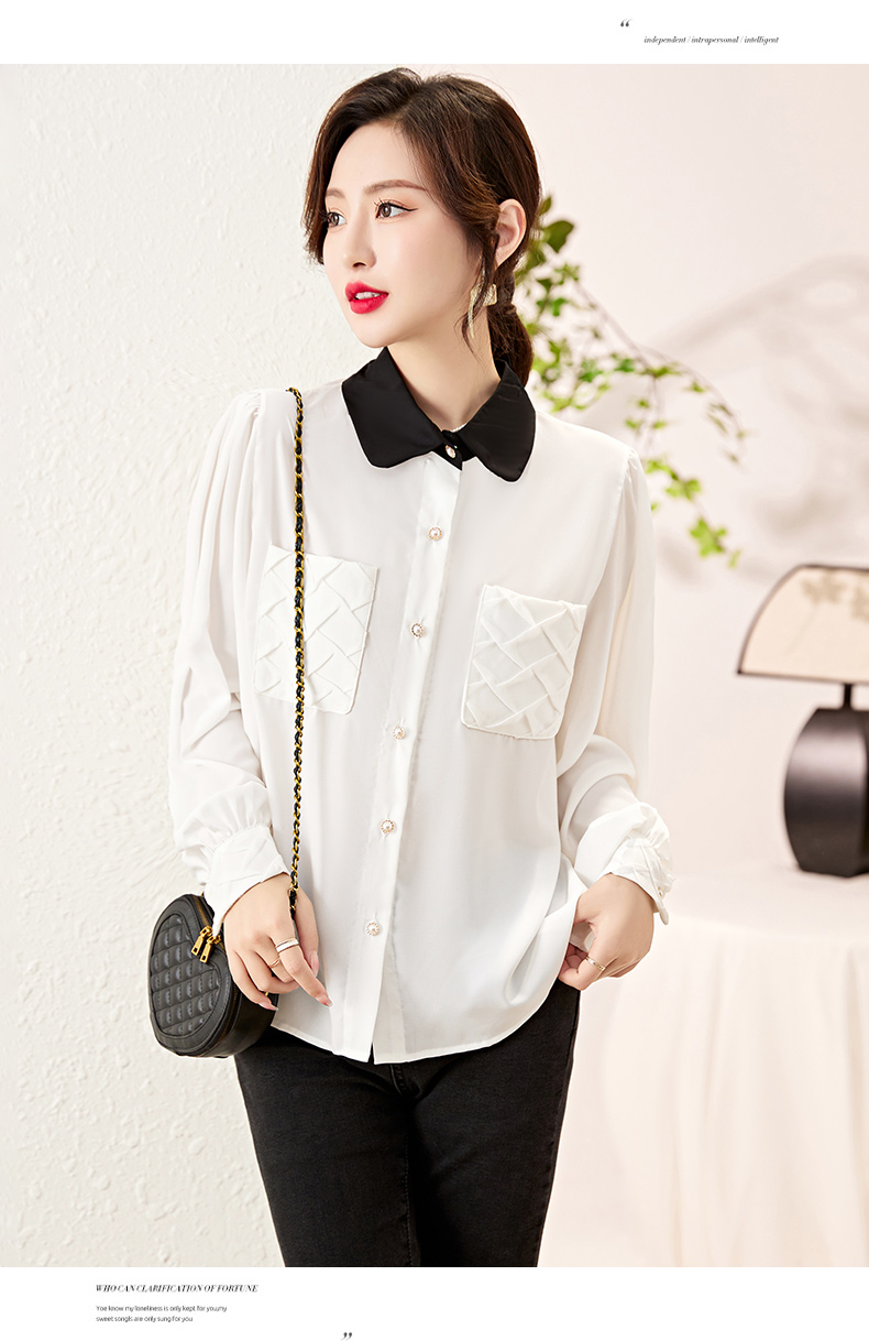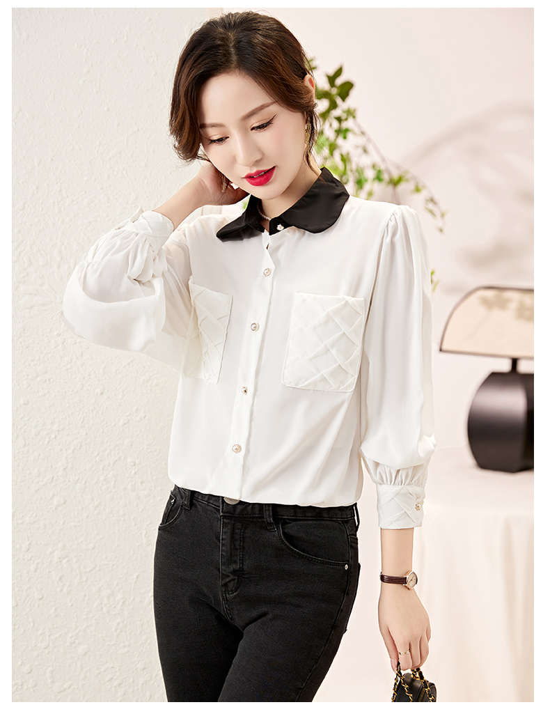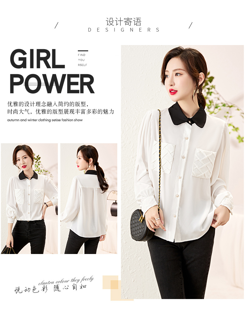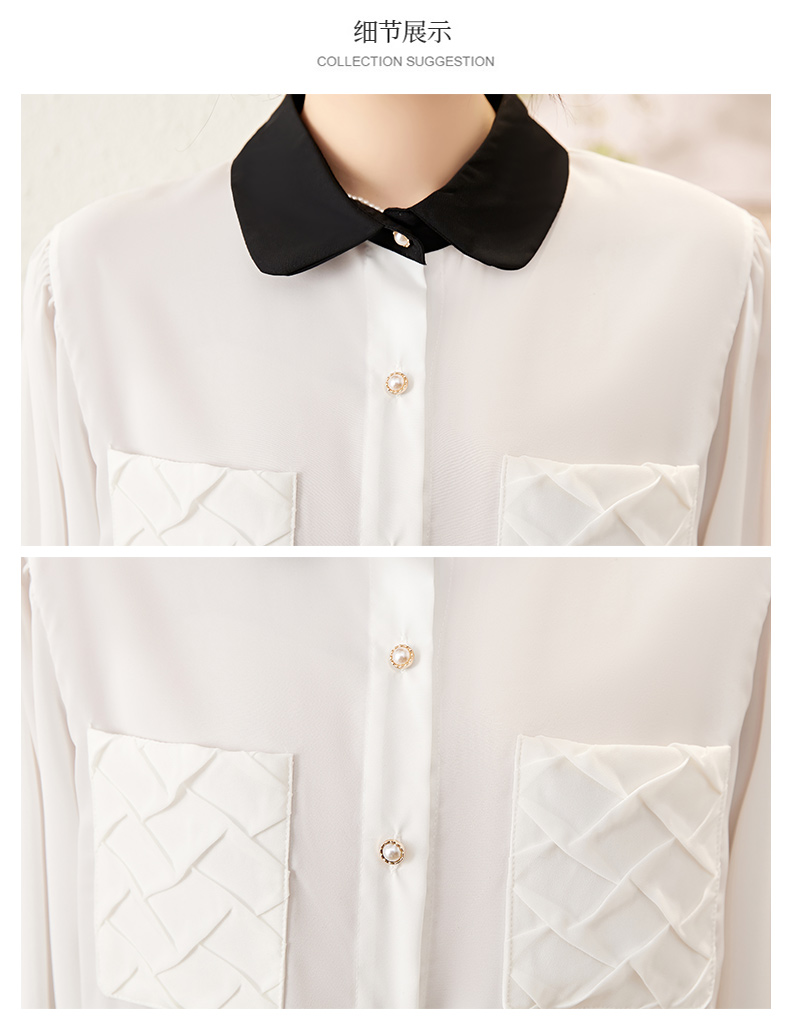时尚百搭,春季新款休闲气质显瘦拼色翻领雪纺衬衫上衣女HR-JNNS2323-1