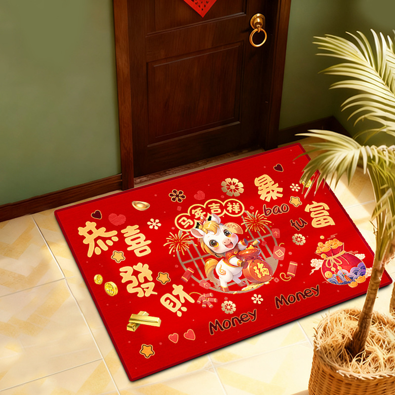 【马年限定❗️福气满满新年地毯】脚踩进门,迎接新年好运,进门喜庆地毯入户门红地垫脚垫家用加厚,