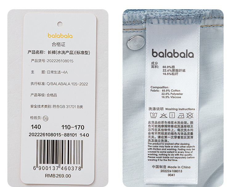 【商场同款】巴拉巴拉童装女牛仔裤儿童裤子2026新款夏柔软直筒裤
