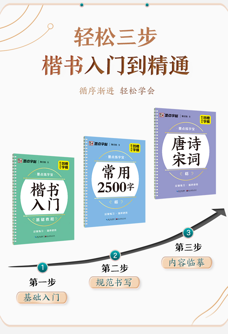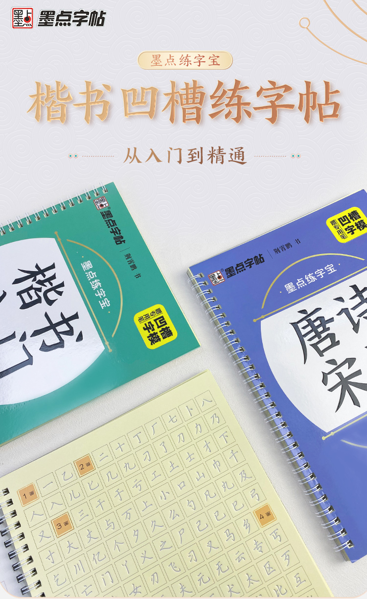 墨点字帖 练字宝 楷书凹槽练字帖3本初学者成人练字男生女生钢笔字速成字帖大学生专用反复练习可消失