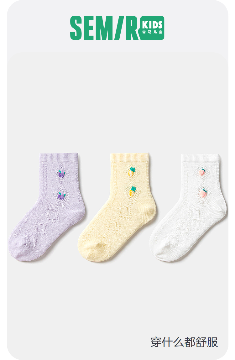 森马儿童袜子2024新款透气网眼甜美温柔学生袜夏季女童短袜3双装