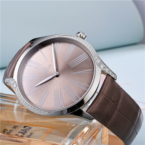 镜面材质 | 蓝宝石水晶玻璃 | 表盘 | 精钢镶钻表壳 灰棕色亮漆表盘转印独特的罗马数字时标,镀銠指针。表冠由红色液态陶瓷打造,镶饰一颗钻石。 镜面表背饰以“Her Time”图案。 密底 |