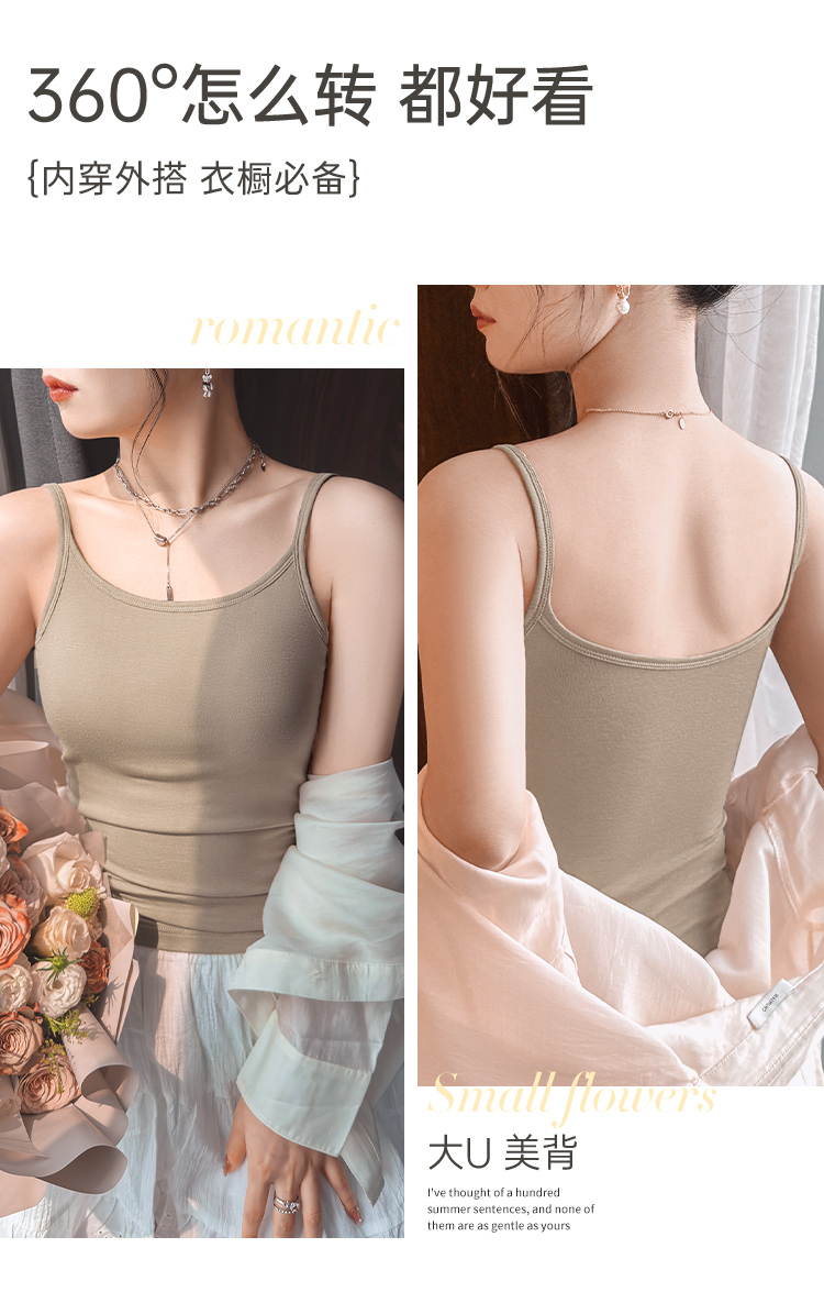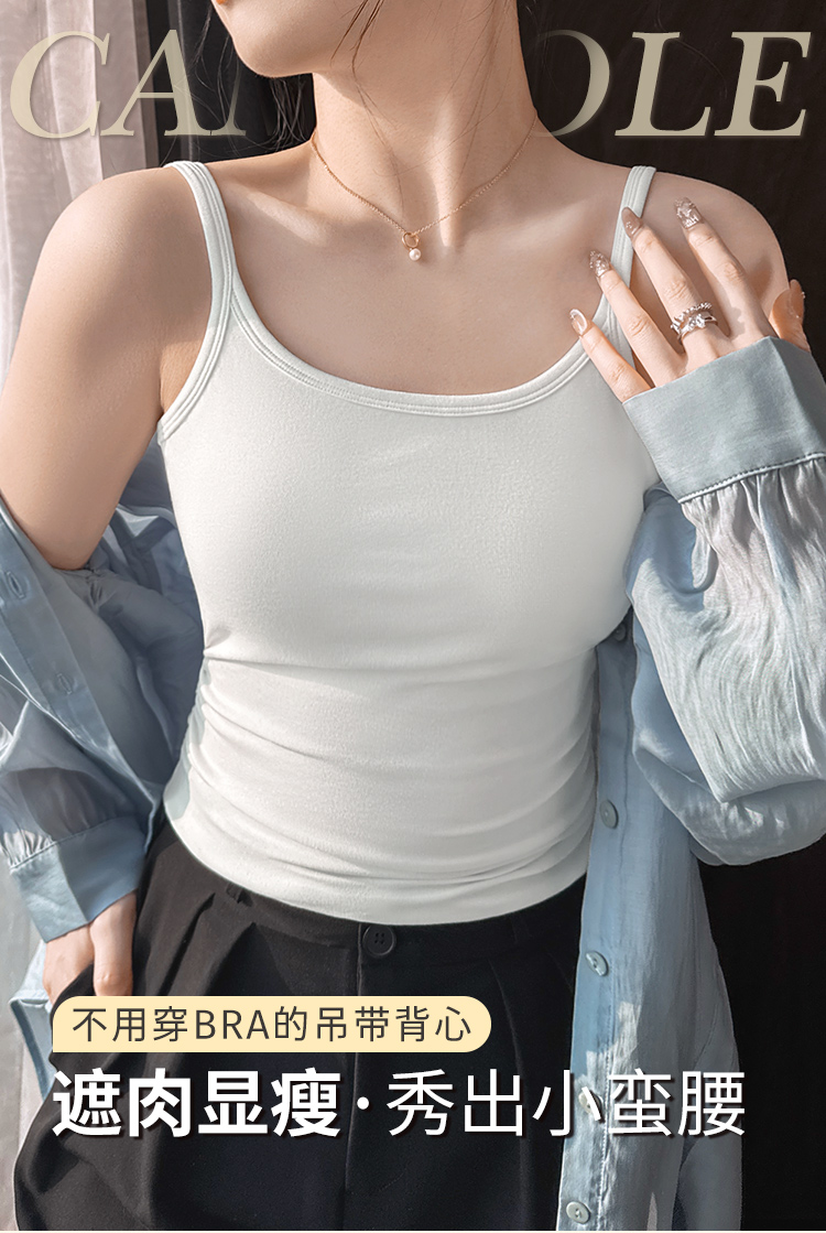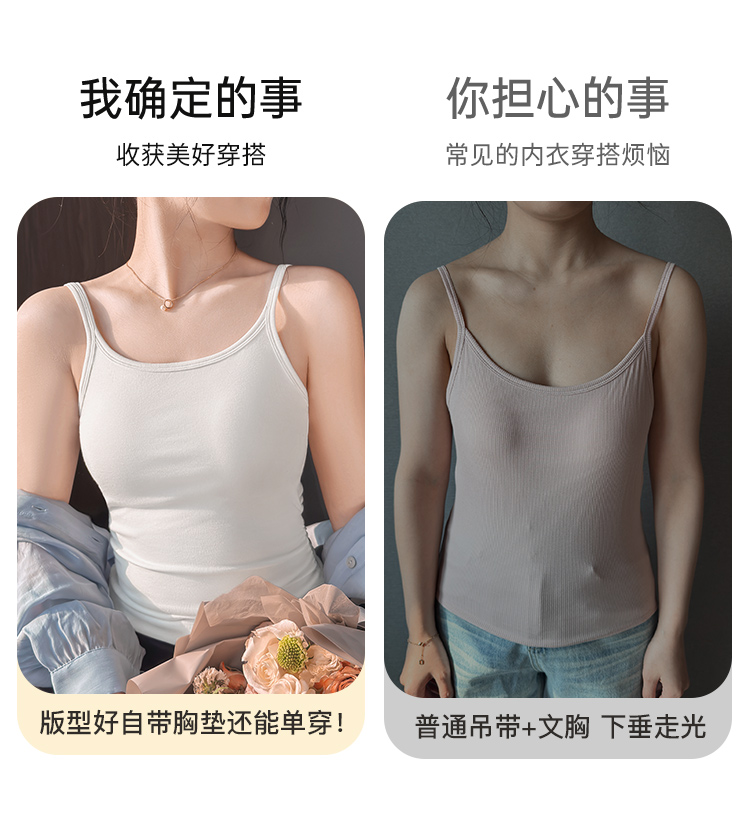 雨濯春尘 吊带背心(VIP) 可外穿女式背心内搭美背打底吊带内衣带胸垫免穿文胸
