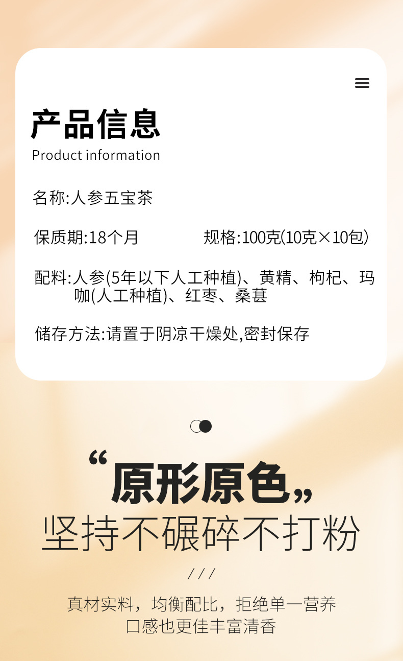 秒杀5盒【营养又美味!独立包装】茶汤红浓剔透,人参五宝茶八宝茶男茶人参枸杞玛卡桑葚男人滋补熬夜养生茶,真材实料,均衡配比,拒绝单一营养。ra