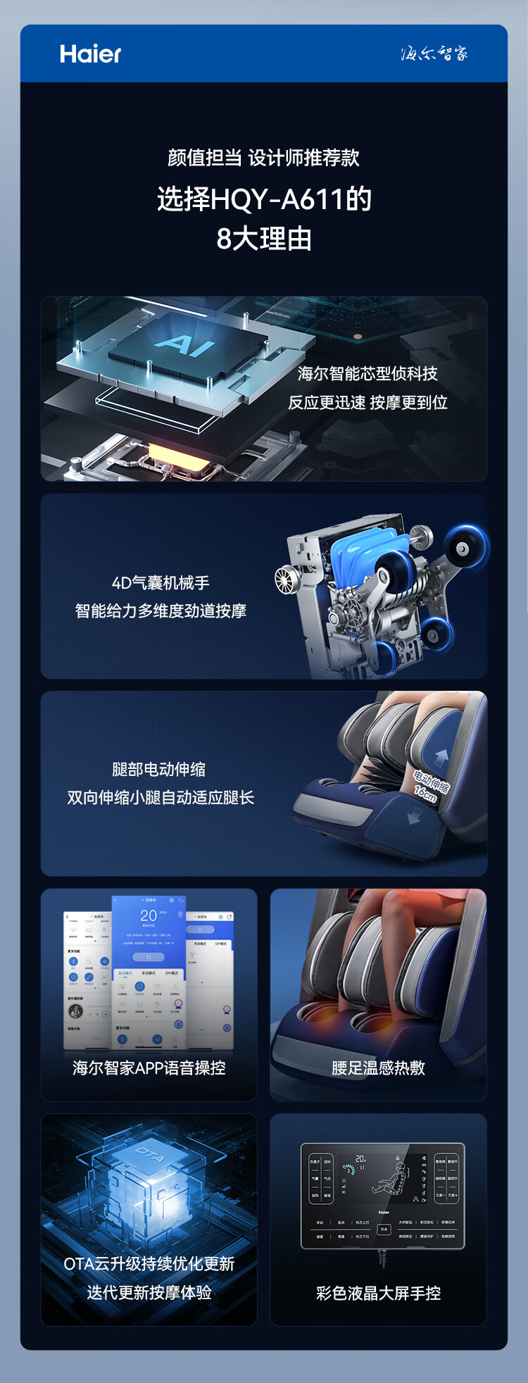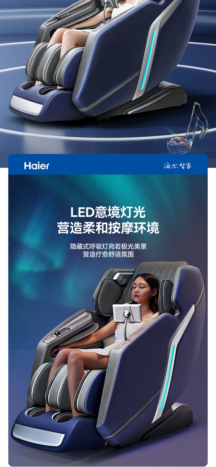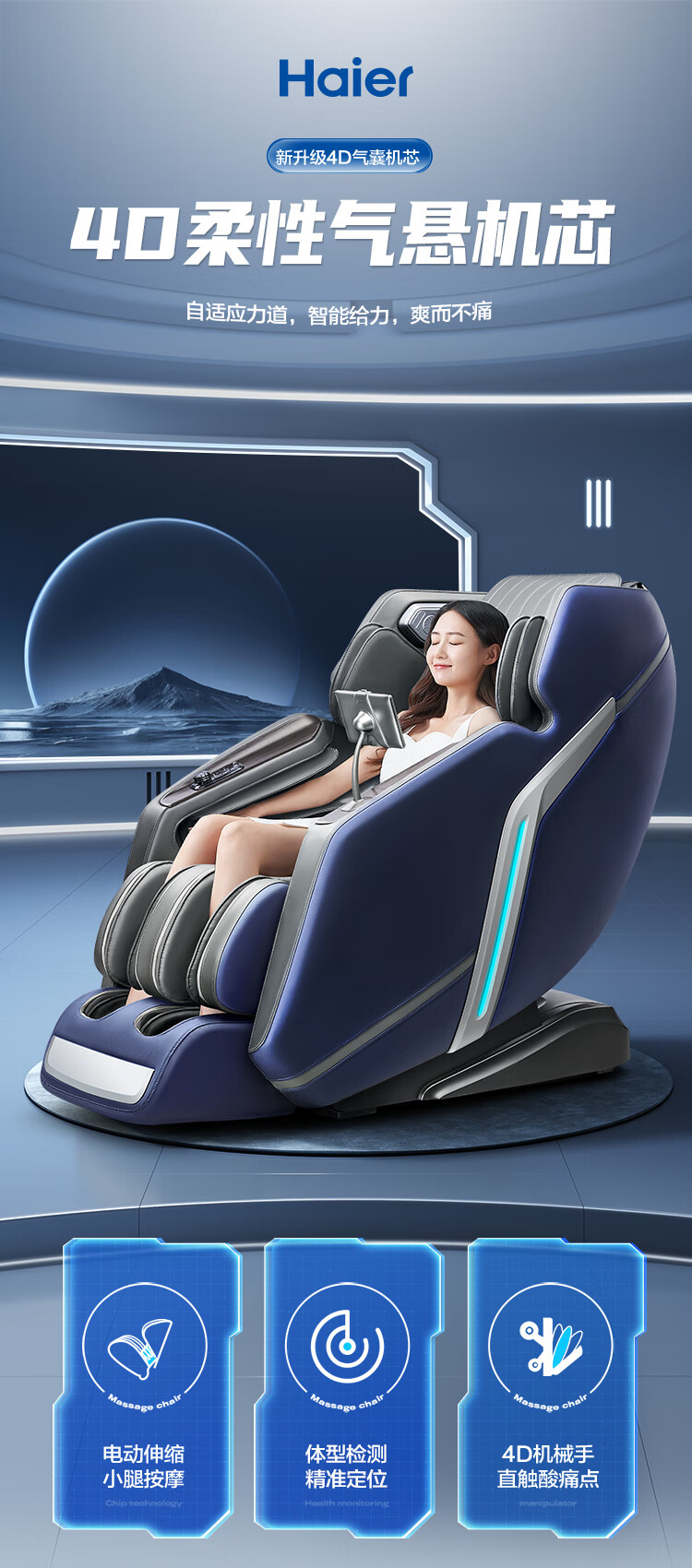 以旧换新-海尔按摩椅家用全身零重力全自动多功能电动按摩沙发椅子4D智能太空舱父母亲节生日礼物实用送爸爸妈妈 HQY-A611ZU1