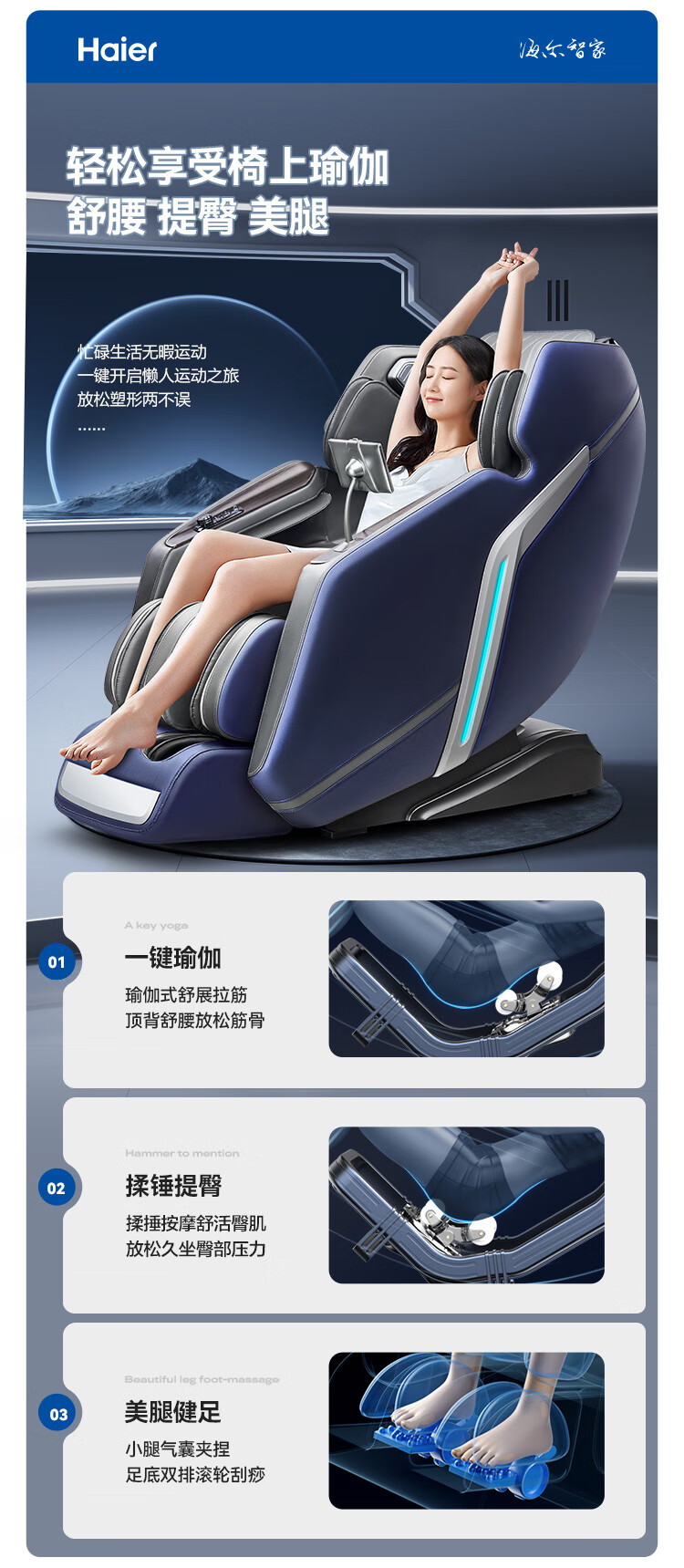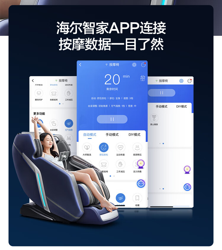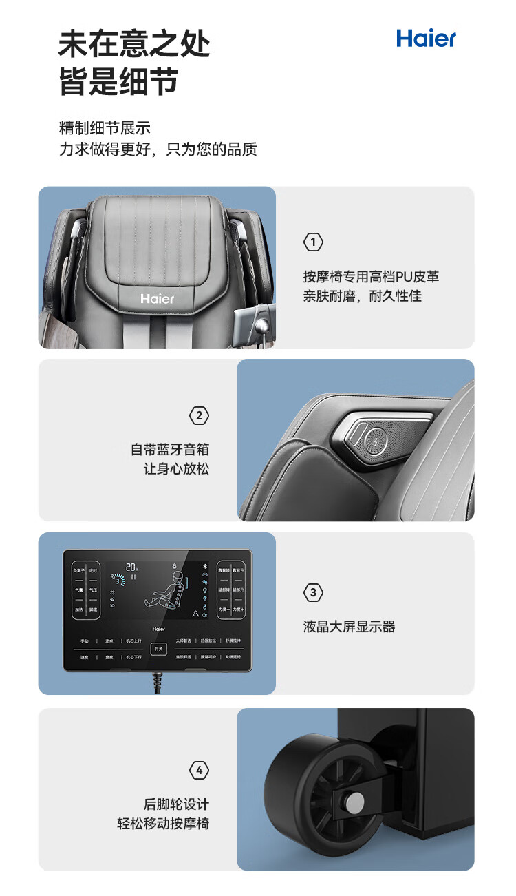 以旧换新-海尔按摩椅家用全身零重力全自动多功能电动按摩沙发椅子4D智能太空舱父母亲节生日礼物实用送爸爸妈妈 HQY-A611ZU1