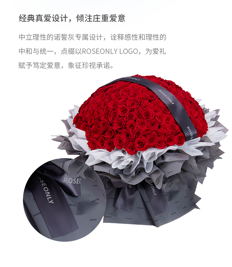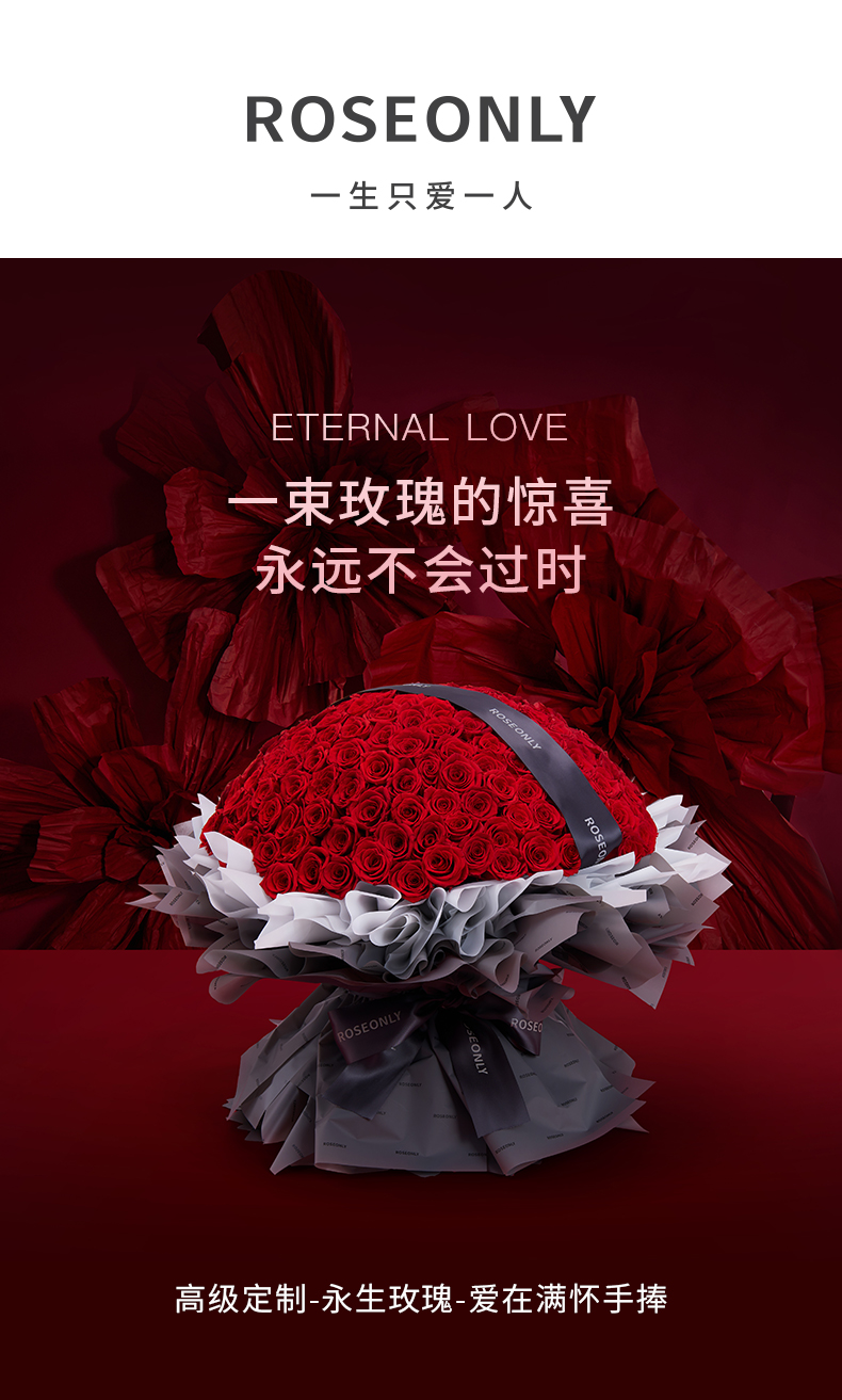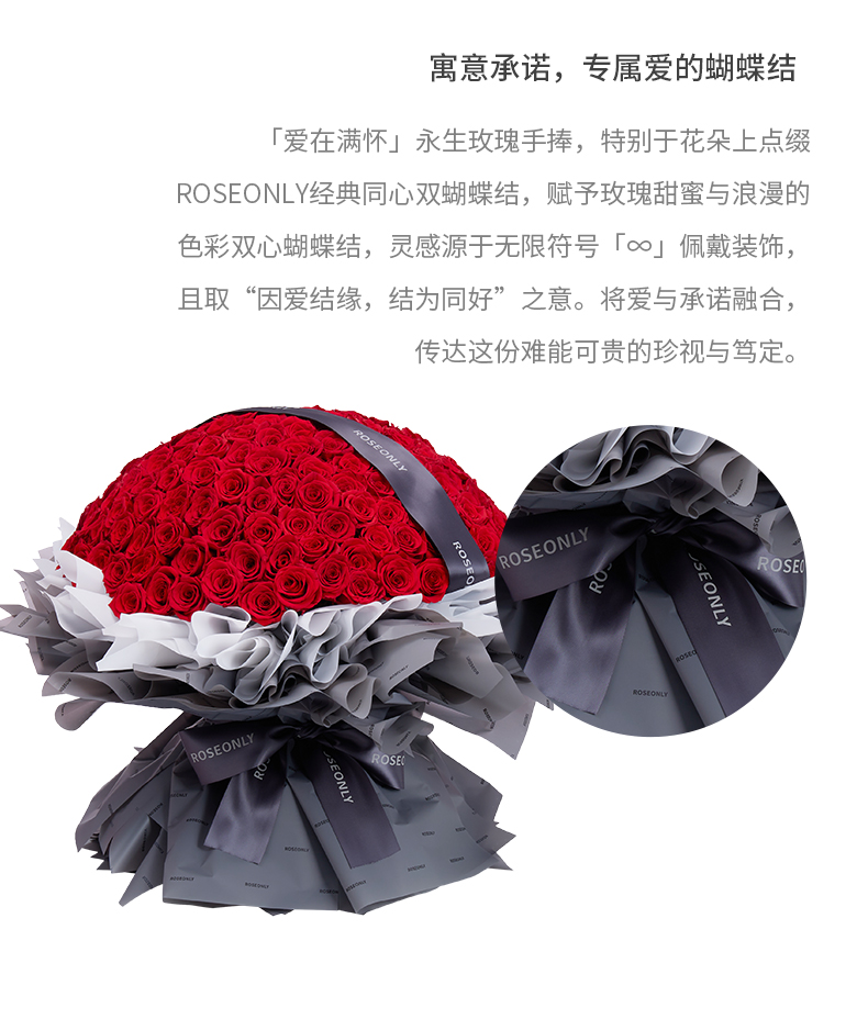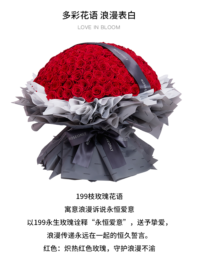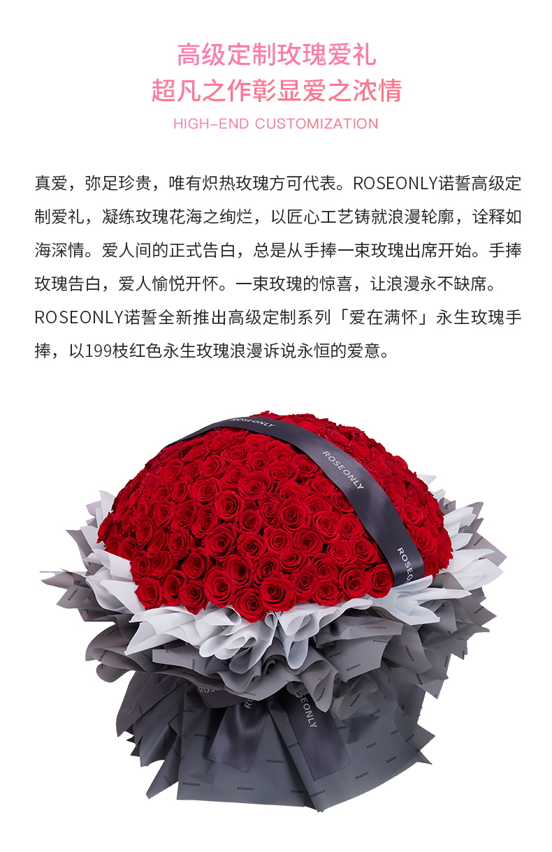 ROSEONLY诺誓 永生玫瑰 爱在满怀-永生手捧 199枝 送女友送老婆