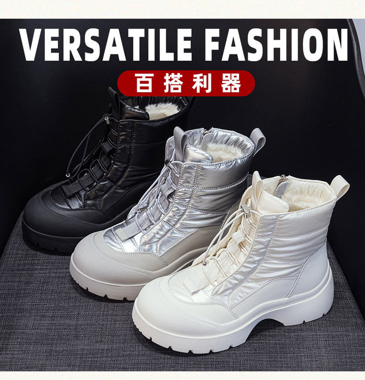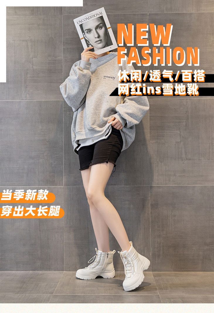 新款休闲短靴秋冬季厚底超火雪地靴高帮鞋加绒保暖鞋中筒靴