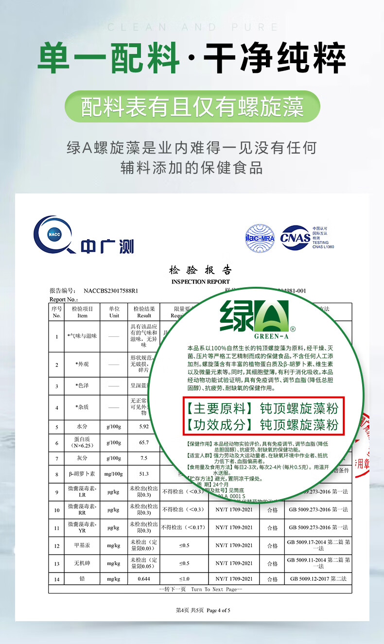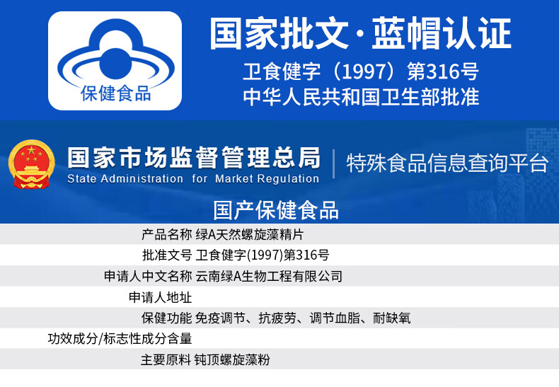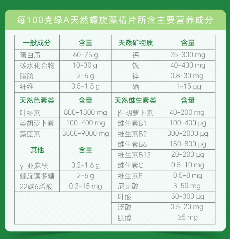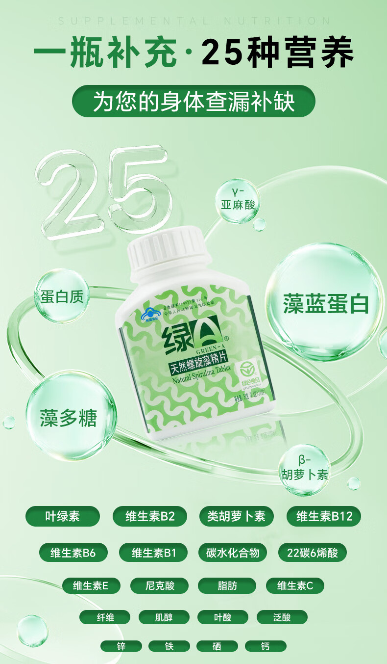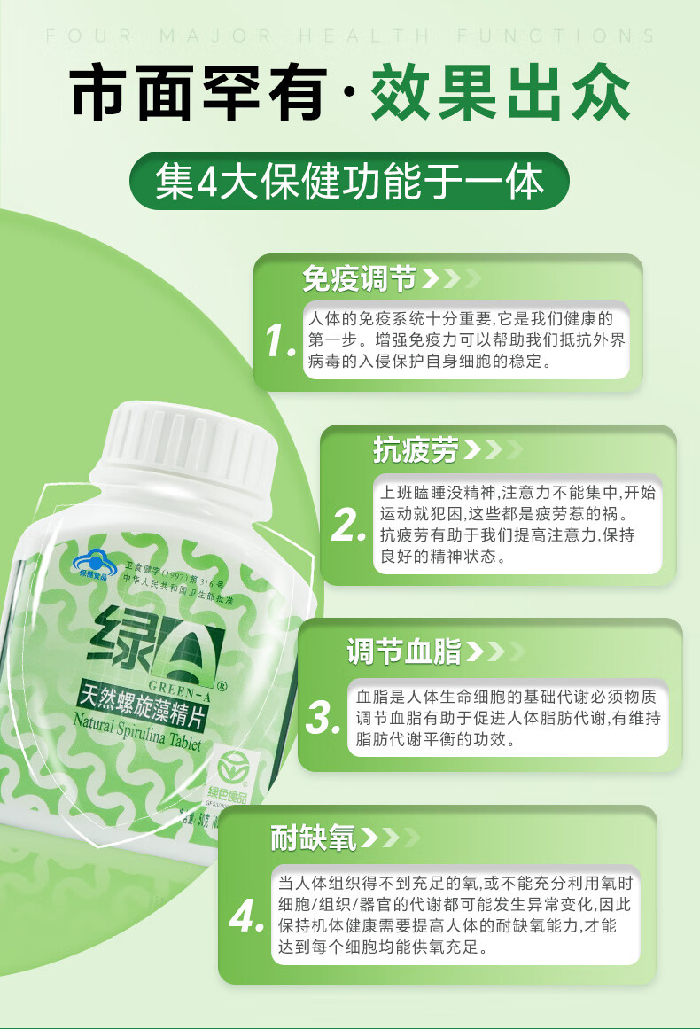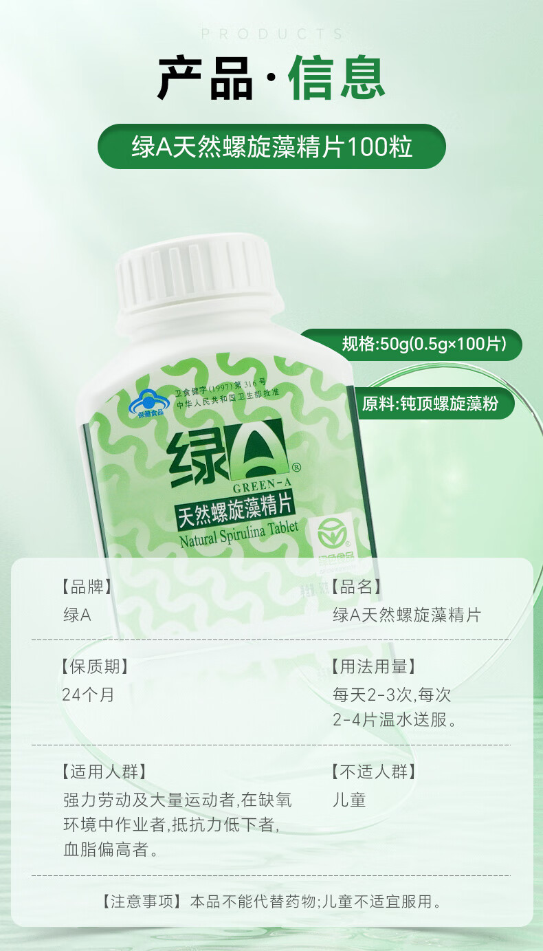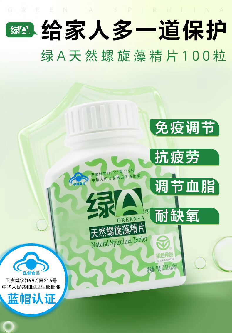 【会员积分专享】绿A螺旋藻精片0.5gx100粒 免疫调节 调节血脂 抗疲劳 耐缺氧