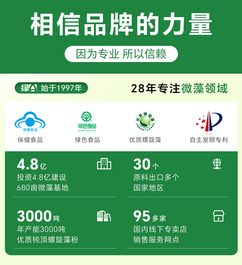- 绿A,源自全球三大天然螺旋藻基地。1997年成立以来,坚持“以民众的健康为己任”,绿A商城致力为您提供绿色原生健康品、定制专属健康生活方案,您还可以参与绿A全系产品试用体验与精彩互动活动。