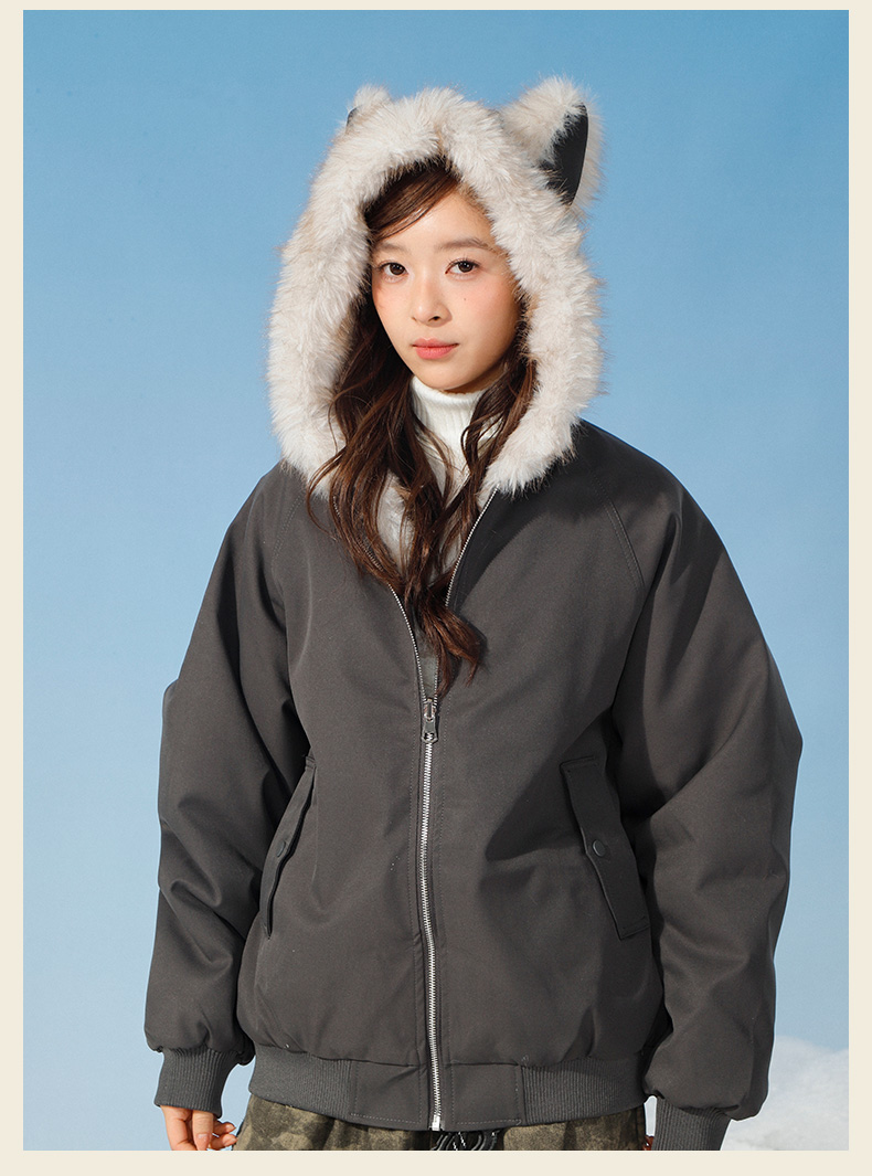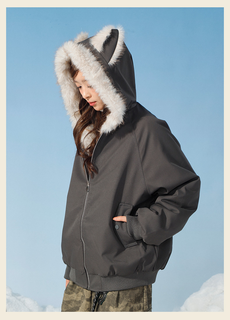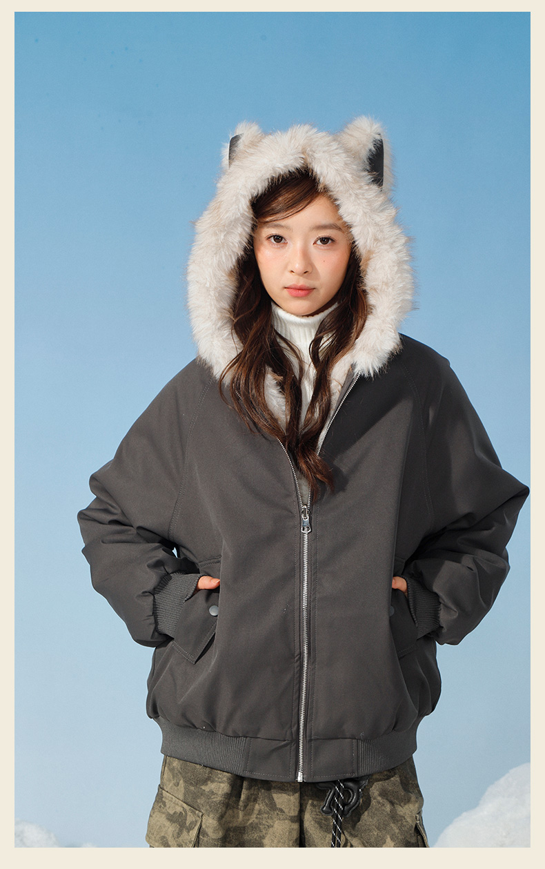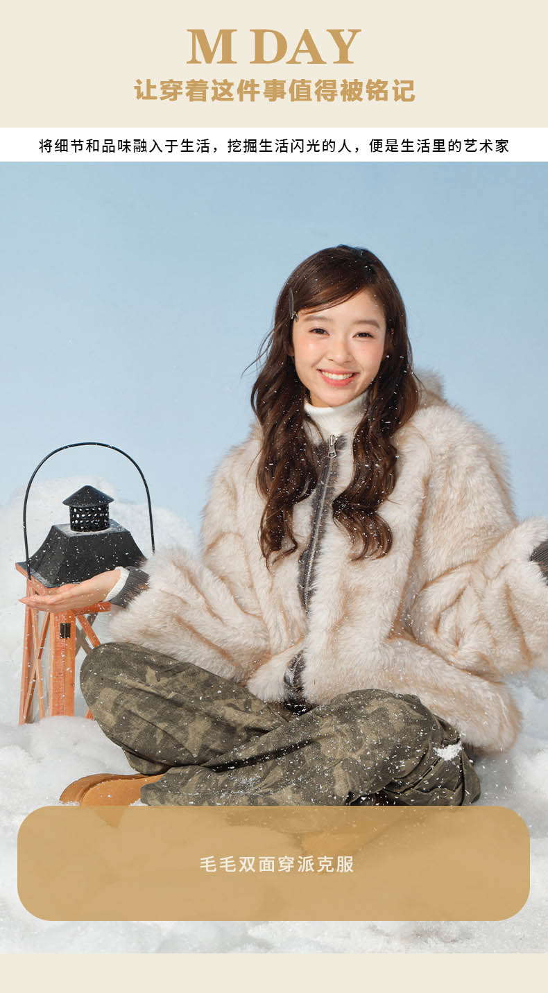 拉链连帽休闲毛毛双面穿派克服外套-纪念日百货门店同款167995177