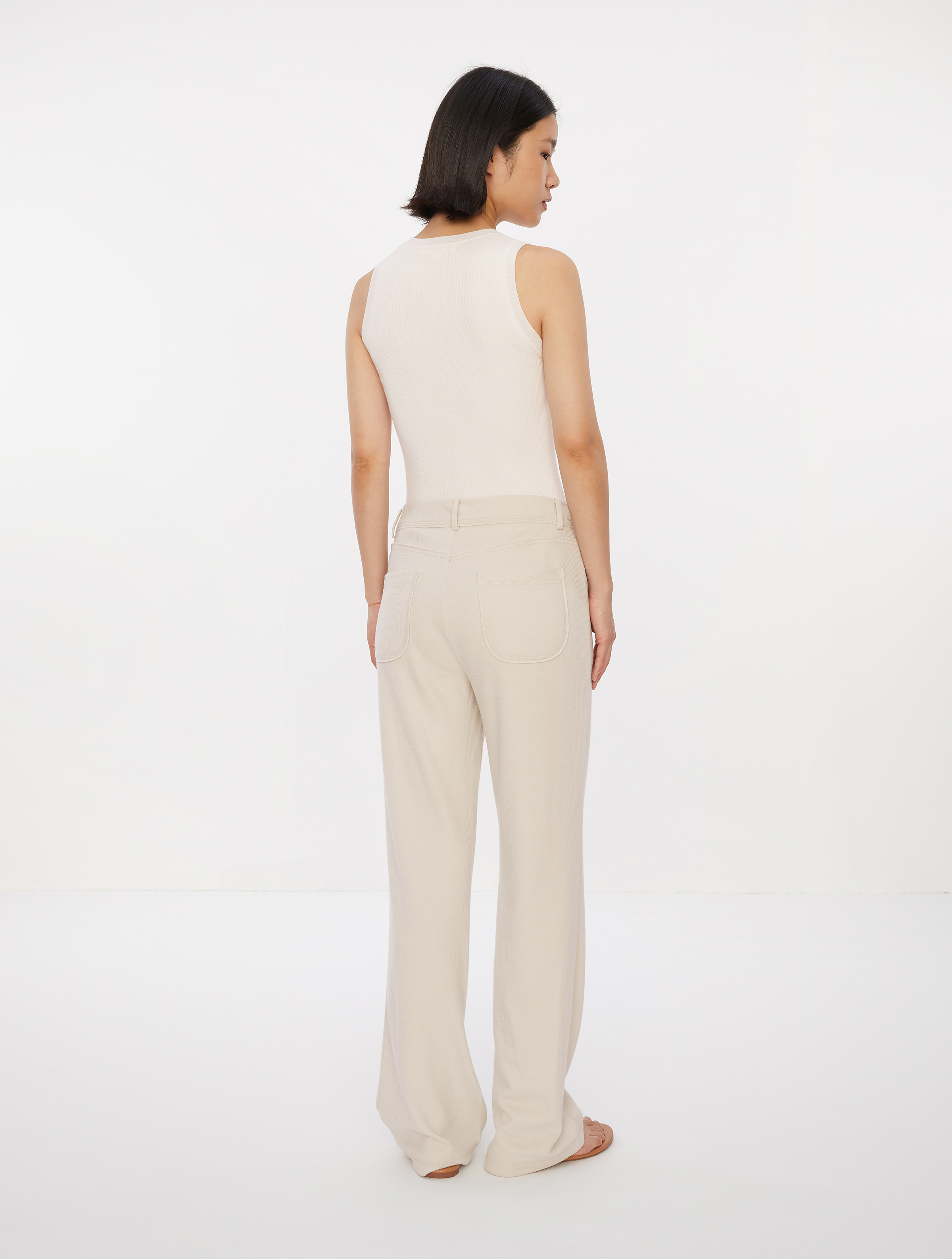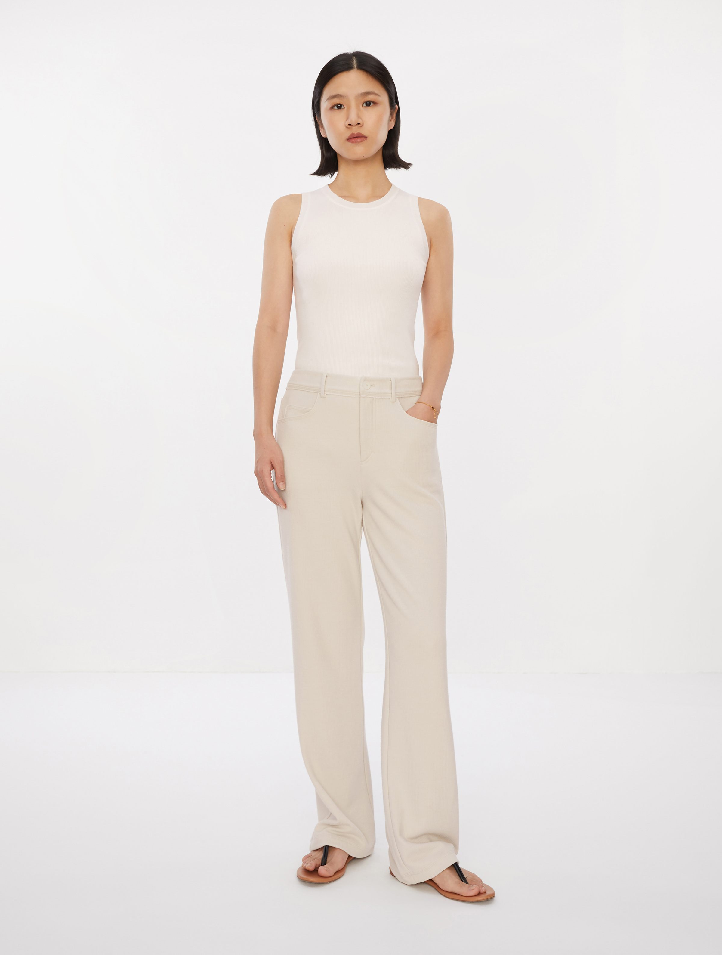 中腰直筒裤简单⼤⽓,线条流畅,穿着舒适;