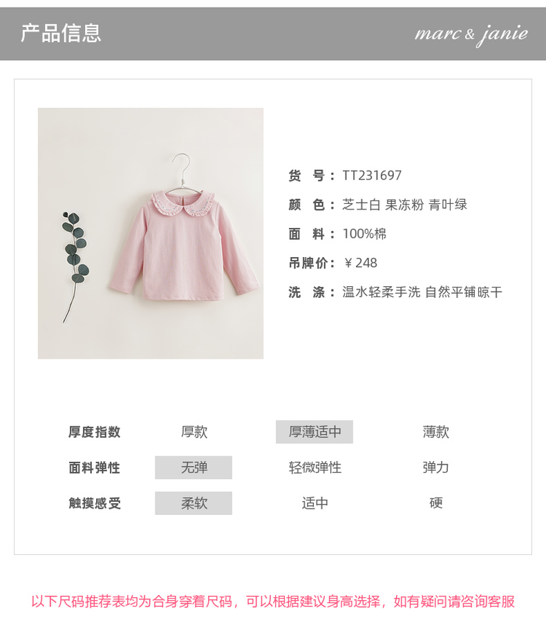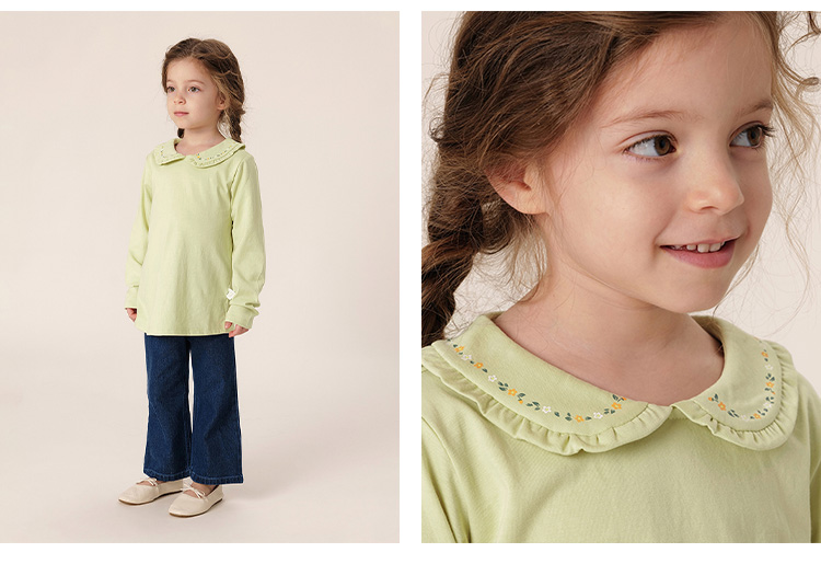 【马克珍妮 芦芙】秋装新款 女童花边领纯棉长袖打底衫T恤 231697