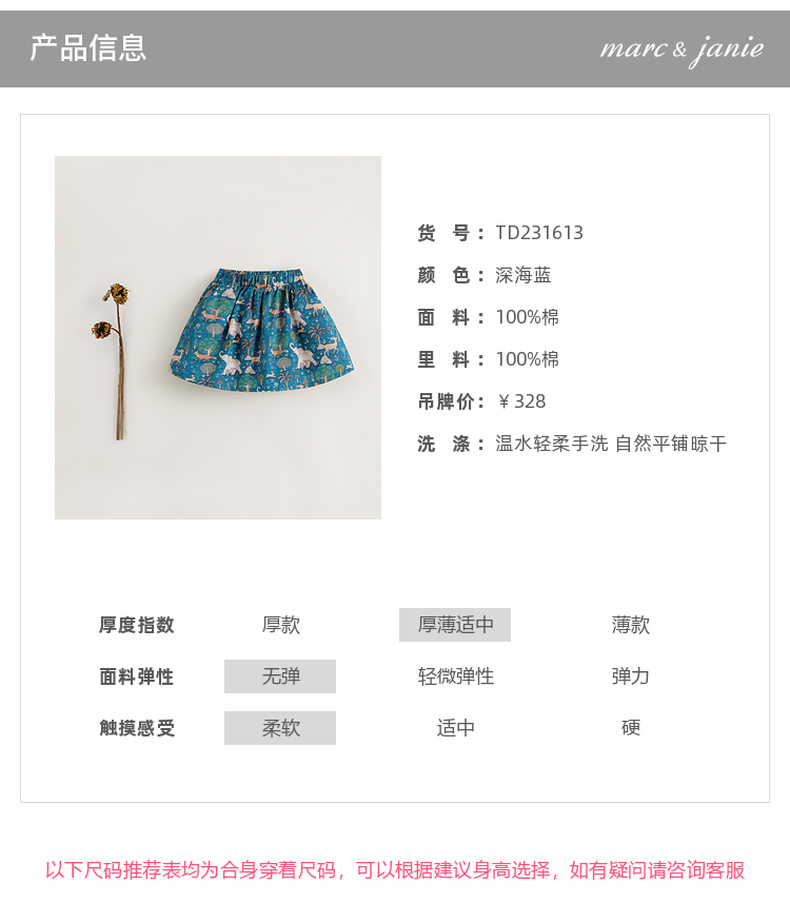 【马克珍妮 芦芙】秋装新款 女童动物游园会纯棉短裙半身裙231613