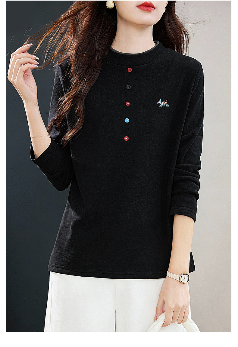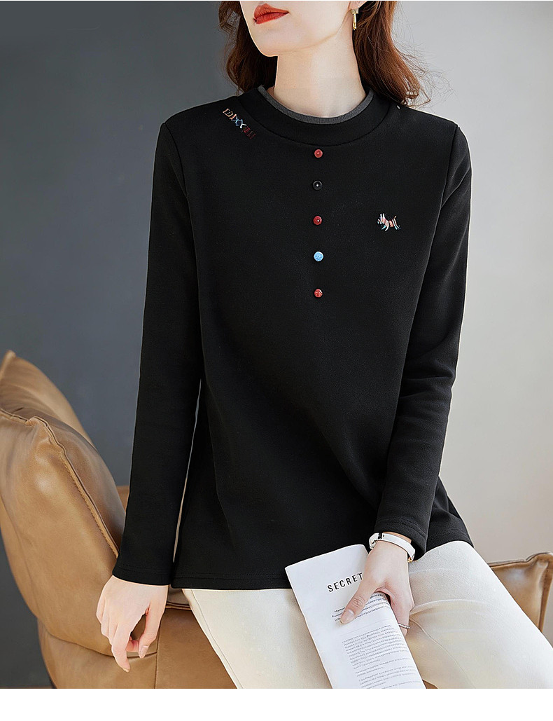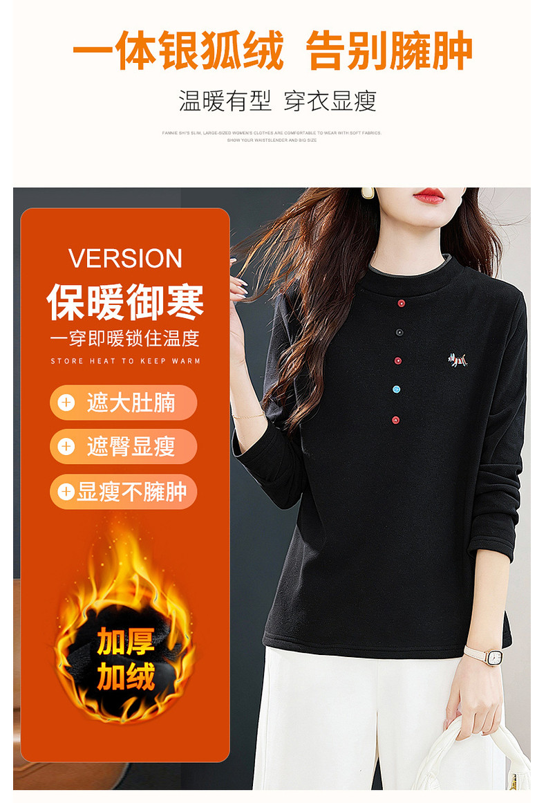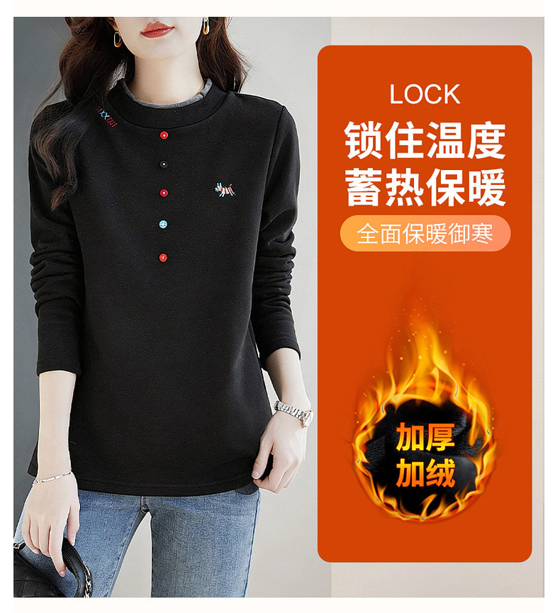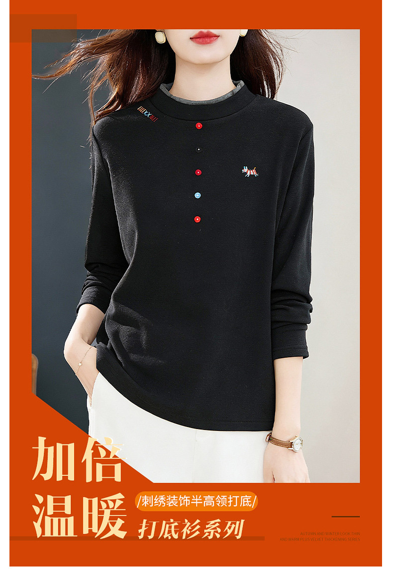 德绒半高领长袖上衣女冬季新款加绒保暖打底衣气质长袖大码显瘦