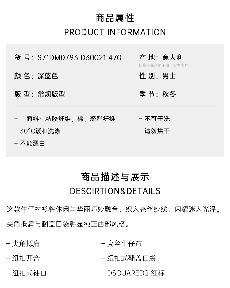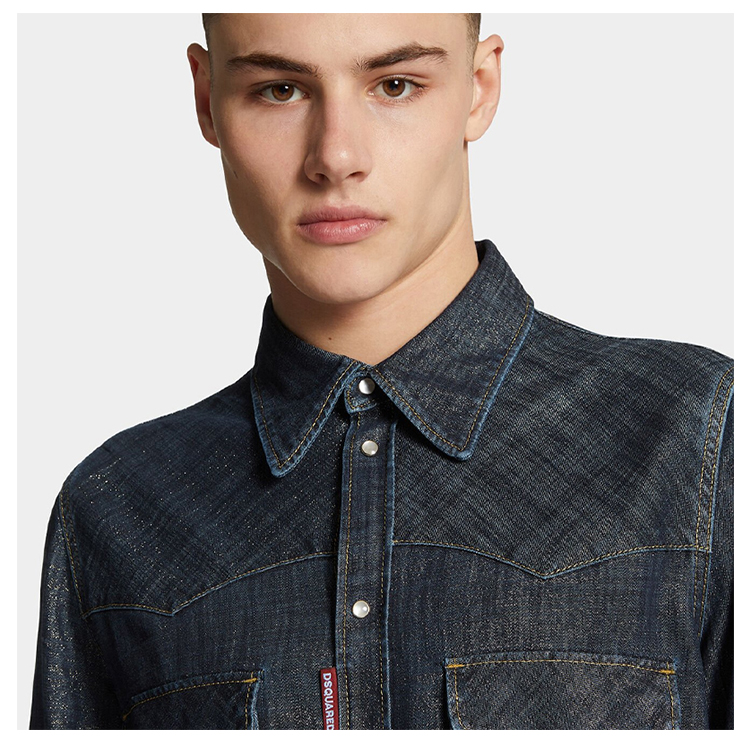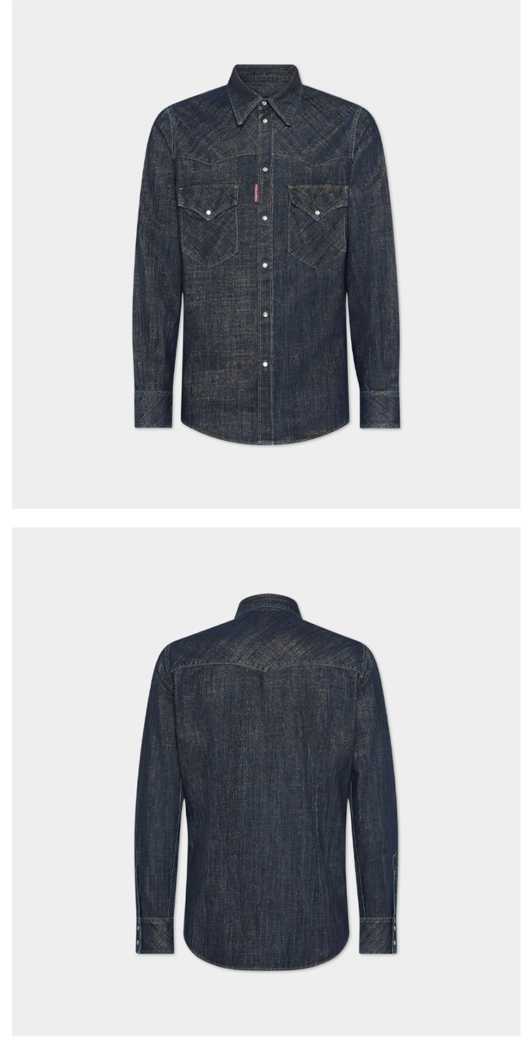 DSQUARED2 男士字母徽标标签牛仔长袖衬衫 深蓝色 S71DM0793 D30021 470
