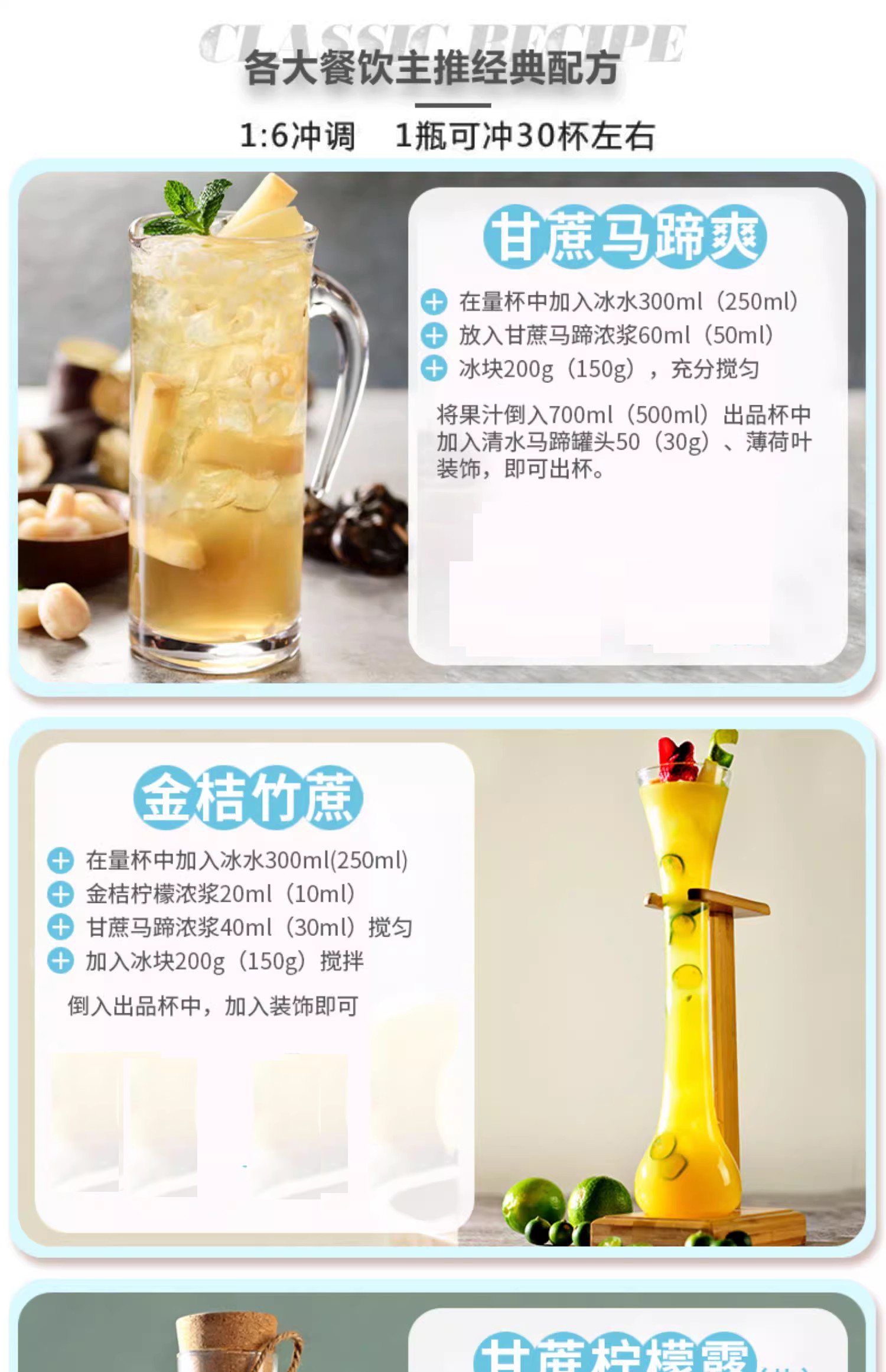 甘蔗马蹄汁 浓缩果汁饮料浓浆1.2kg水果奶茶原料甘蔗马蹄汁