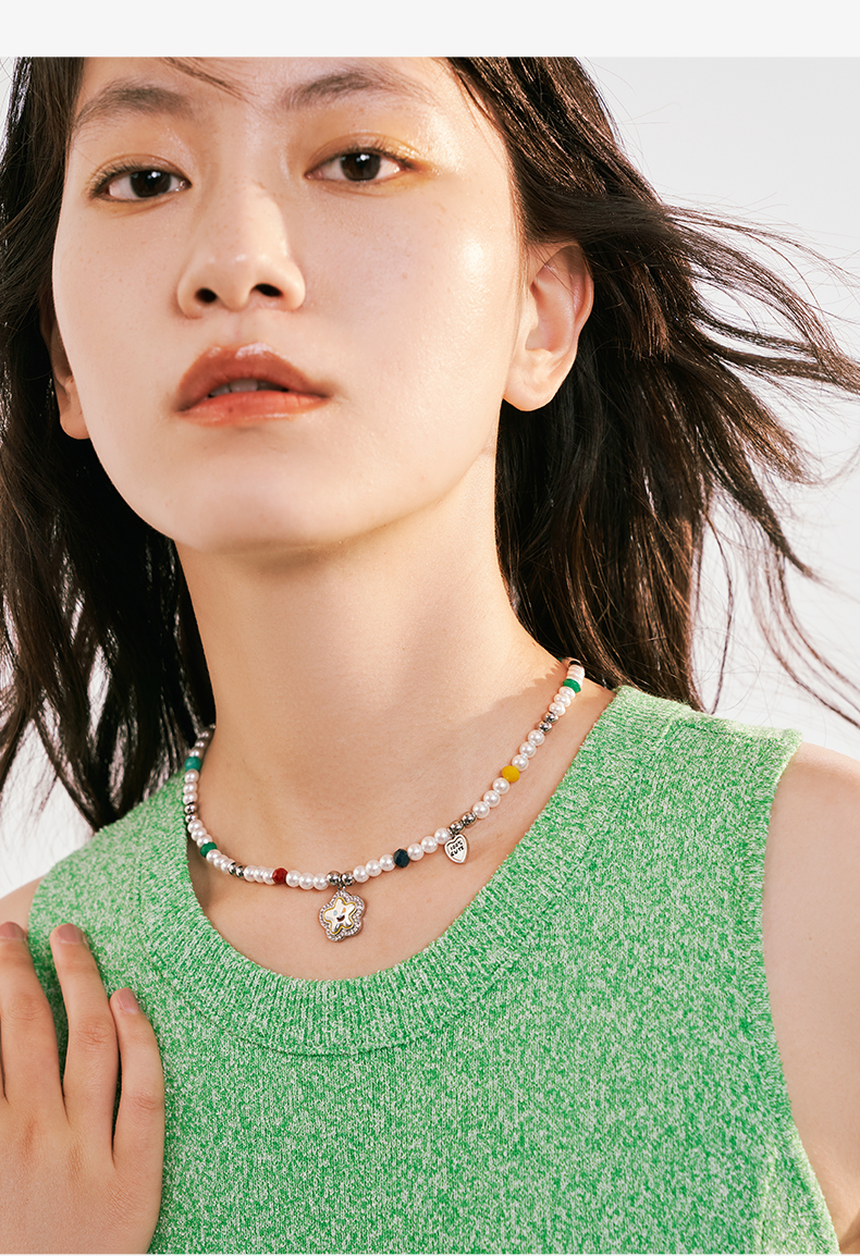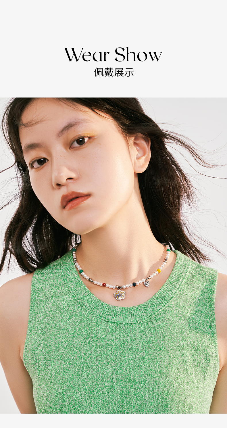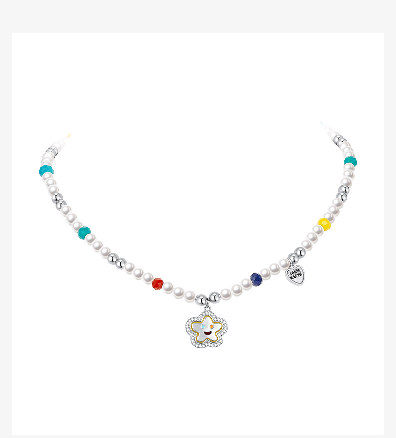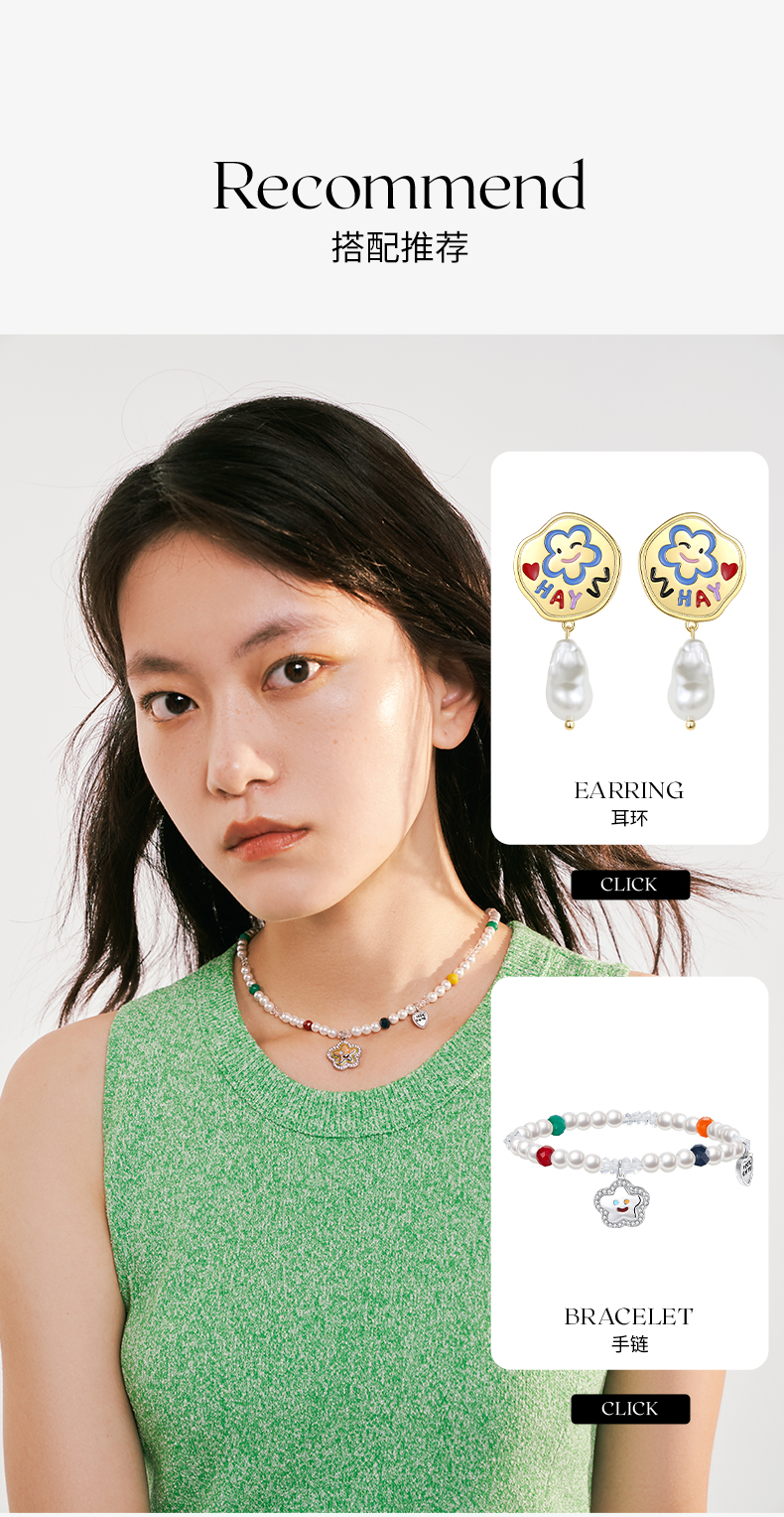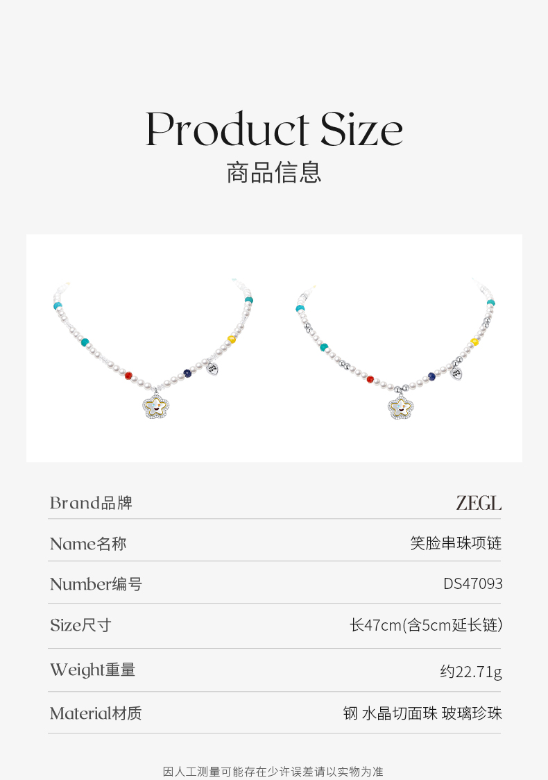 ZEGL笑脸串珠项链女轻奢小众高级感人造珍珠法式复古锁骨链配饰品