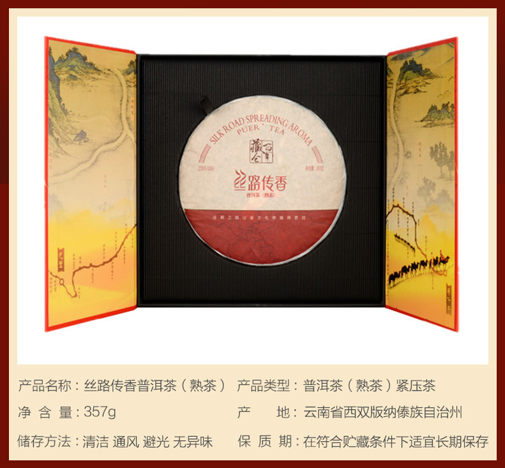 华祥苑 丝路传香普洱熟茶 茶饼礼盒357g