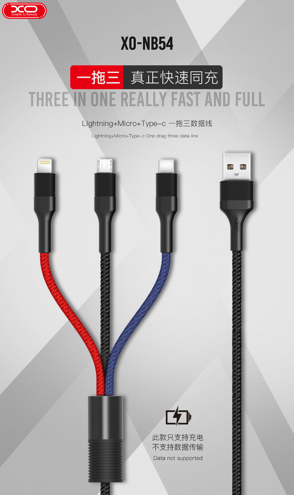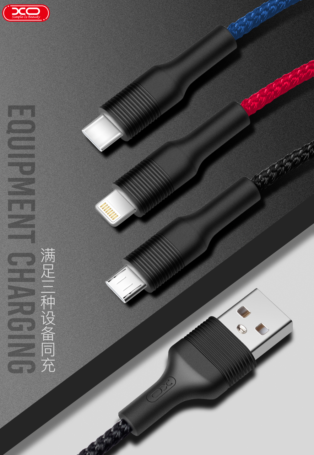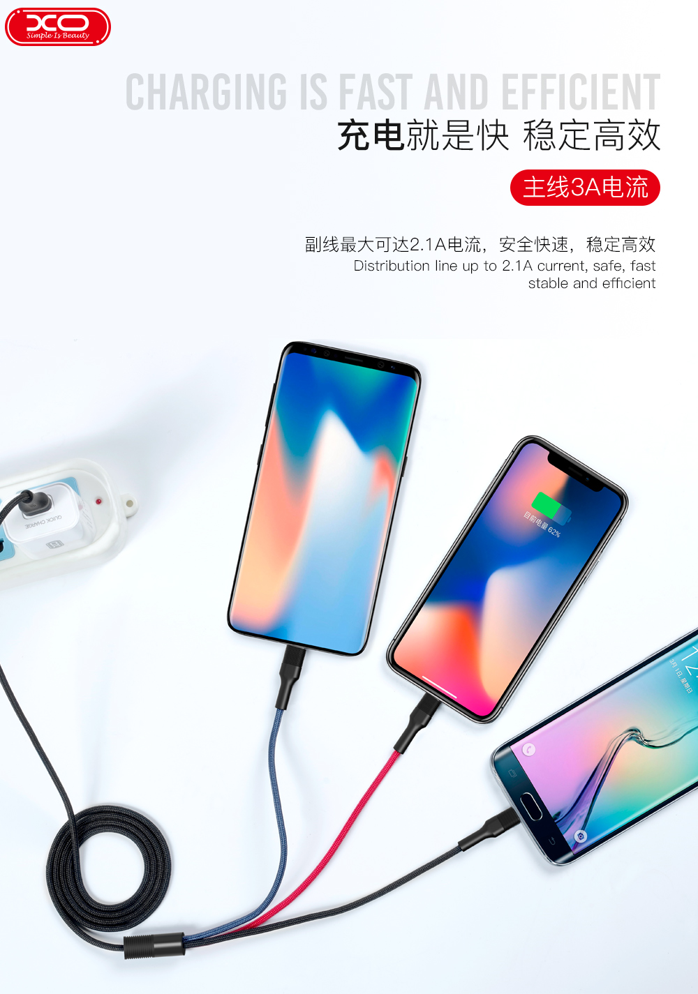 XO多彩系列一拖三编织数据线 1.2米XO-NB54