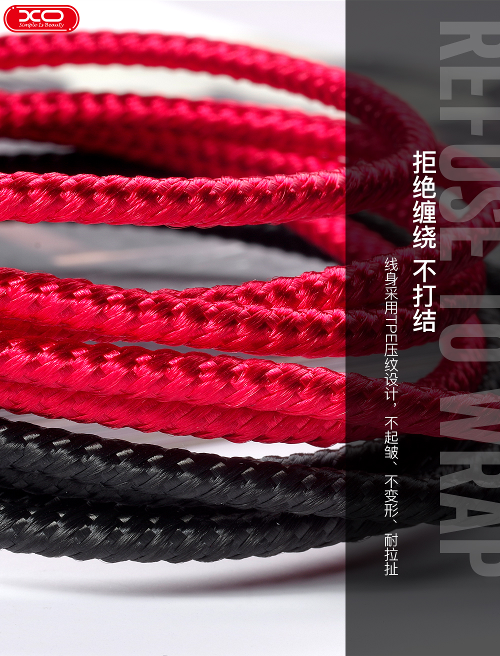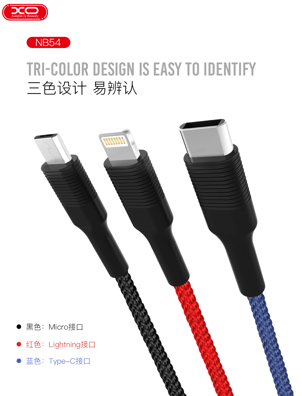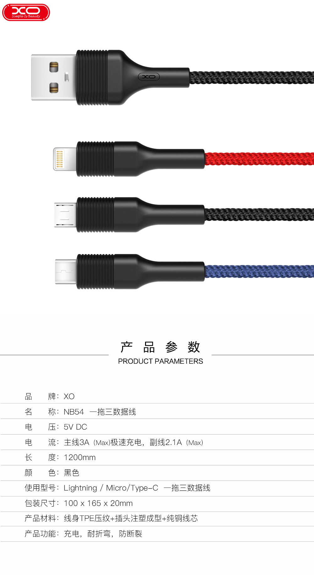XO多彩系列一拖三编织数据线 1.2米XO-NB54