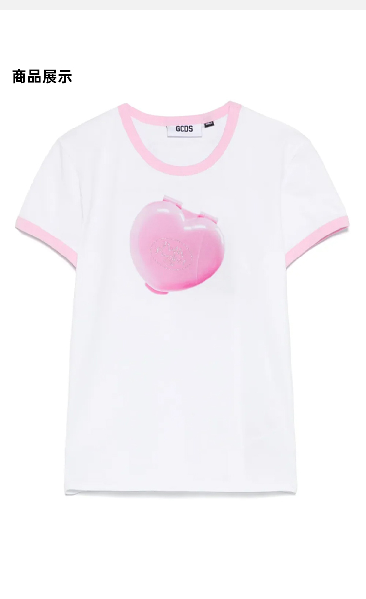 GCDS 女士字母徽标刺绣弹力棉质圆领短袖T恤 白色 B1MW2301JI9 10