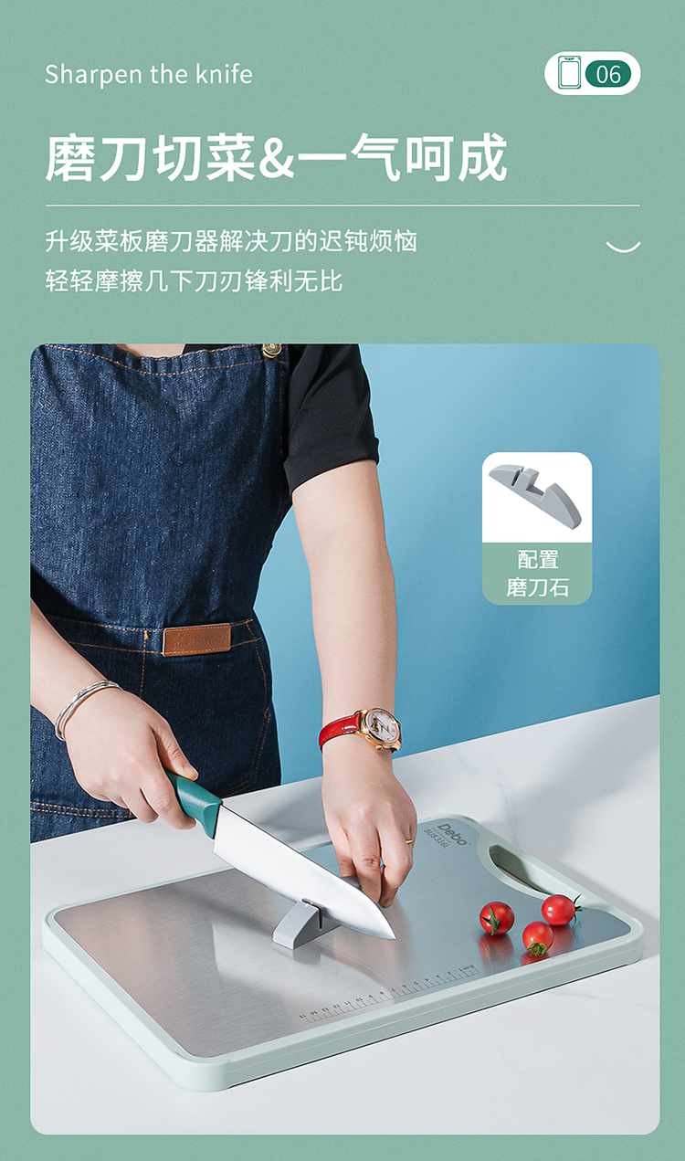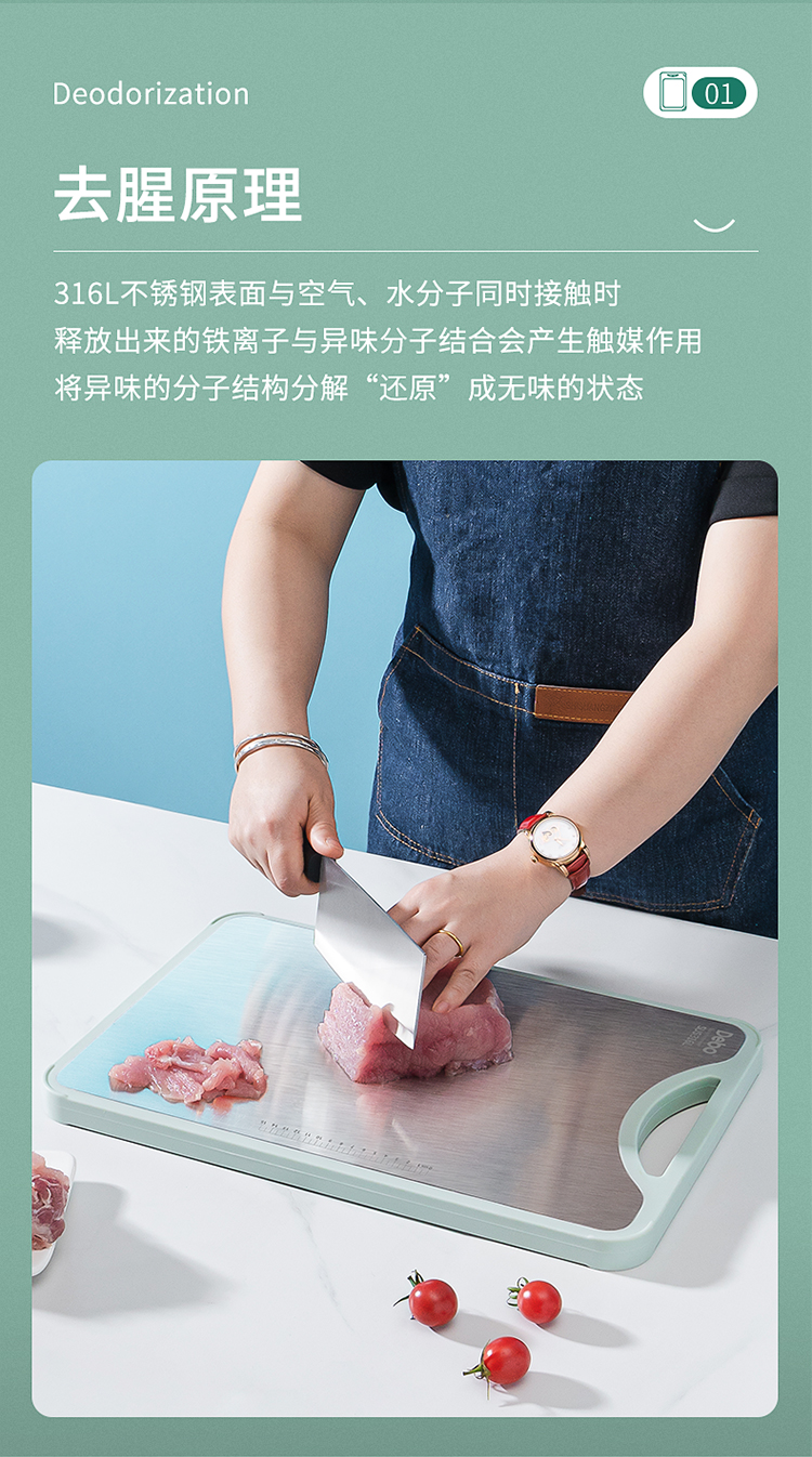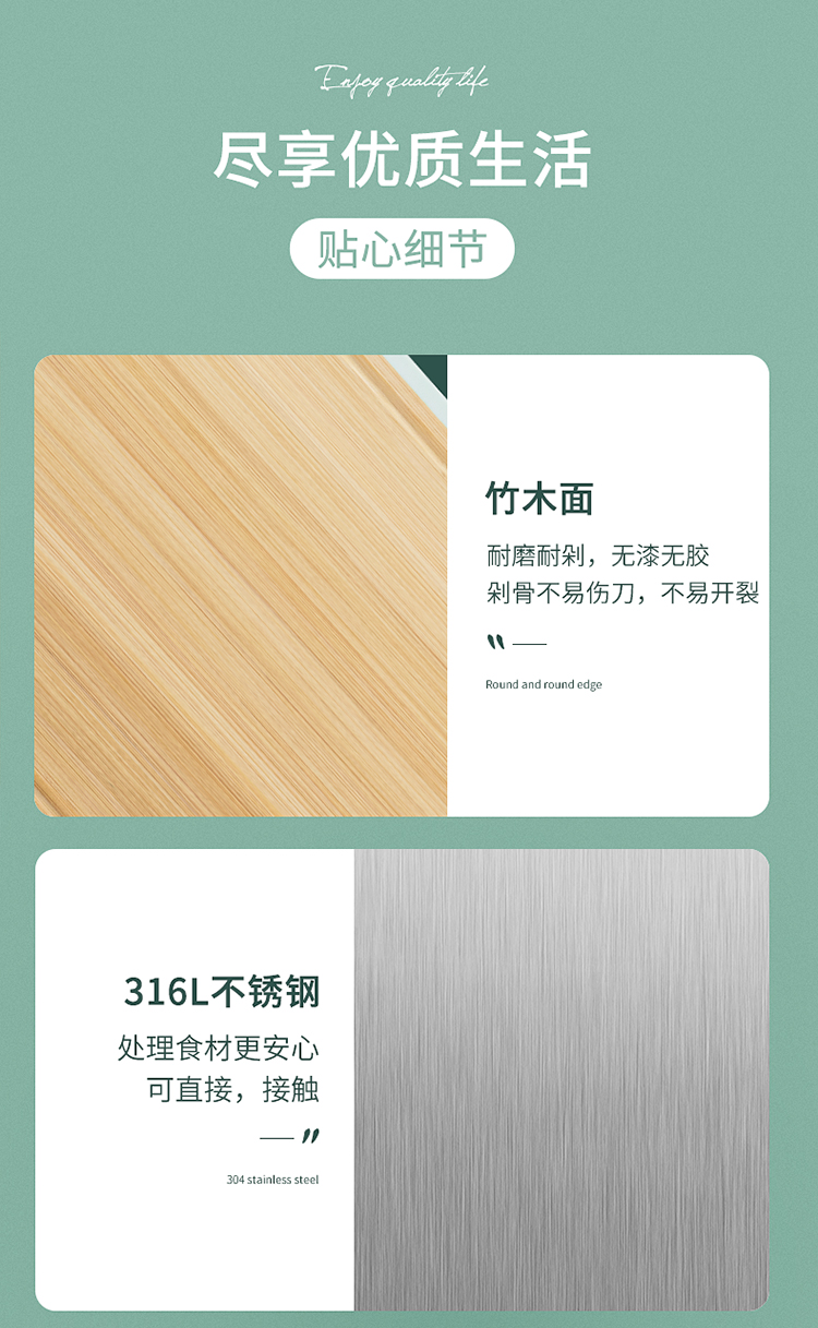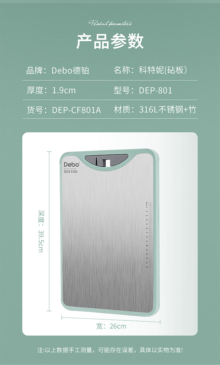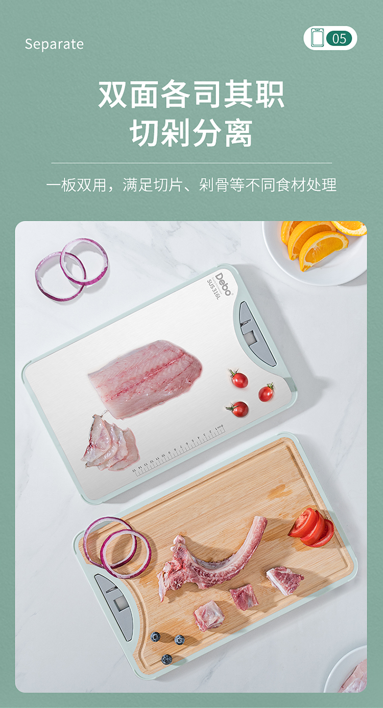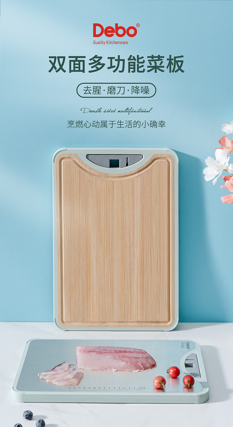 Debo德铂科特妮316不锈钢+竹板双面多用砧板