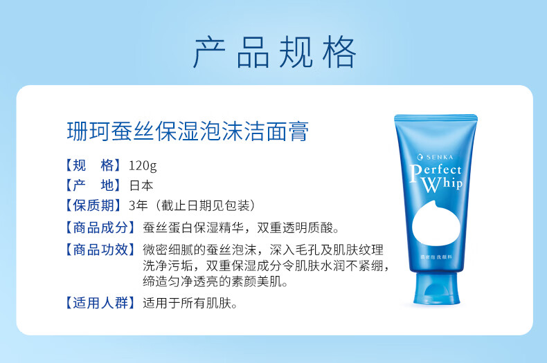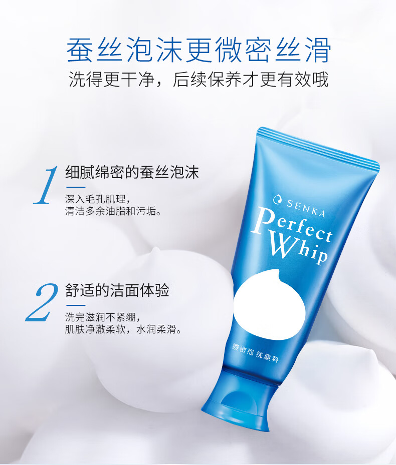 资生堂珊珂(SENKA)绵润蚕丝泡沫洗面奶120g(日本进口洁面乳/深层清洁/清爽滋养/男女适用)