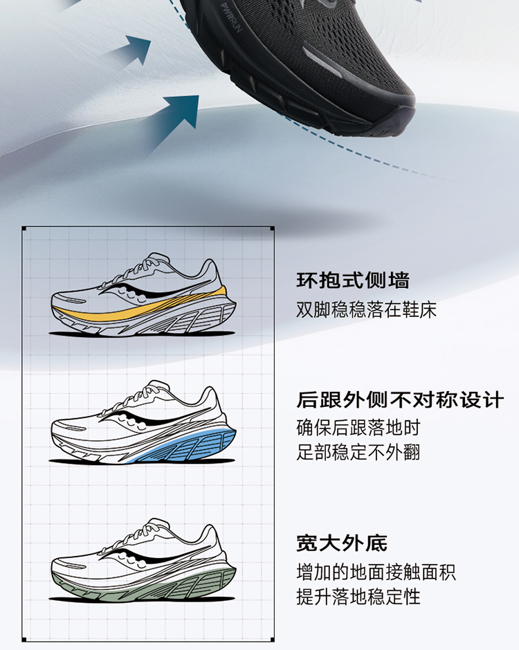 Saucony索康尼 向导18男女款轻便稳定缓震舒适透气运动跑步鞋