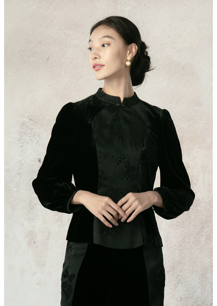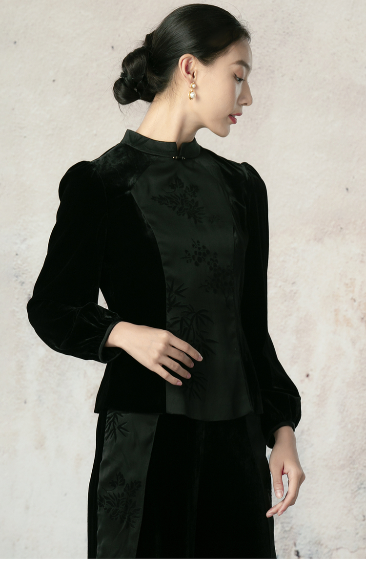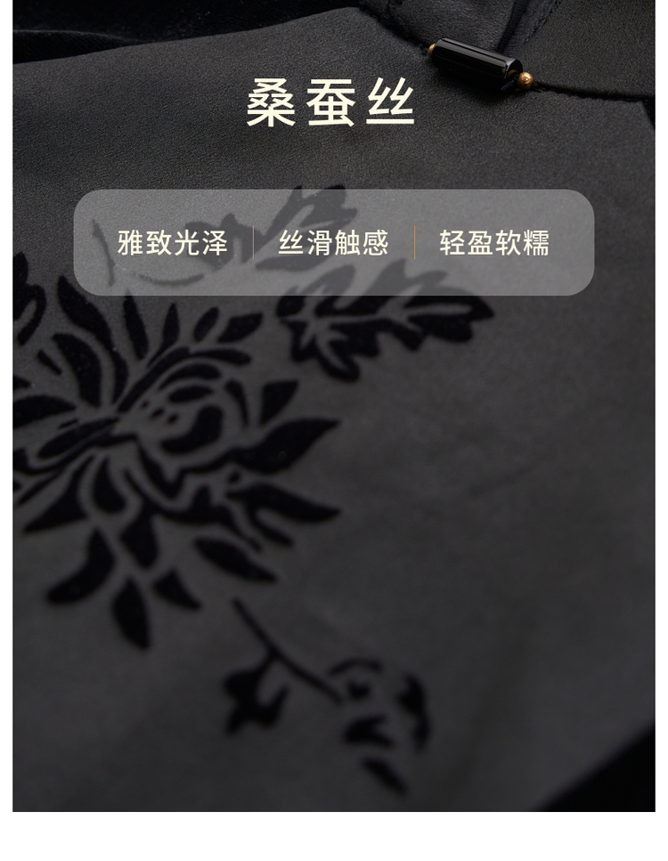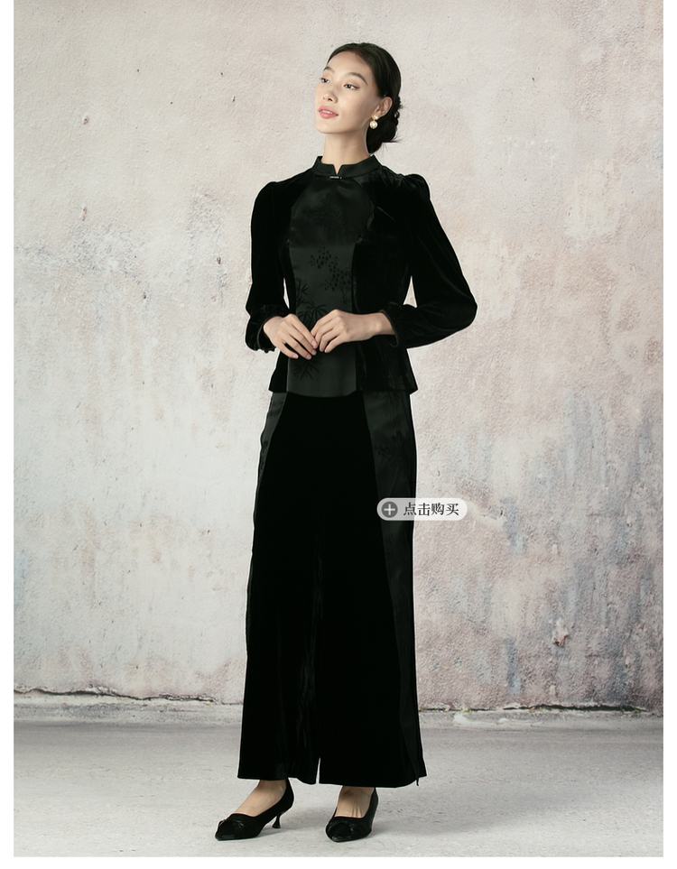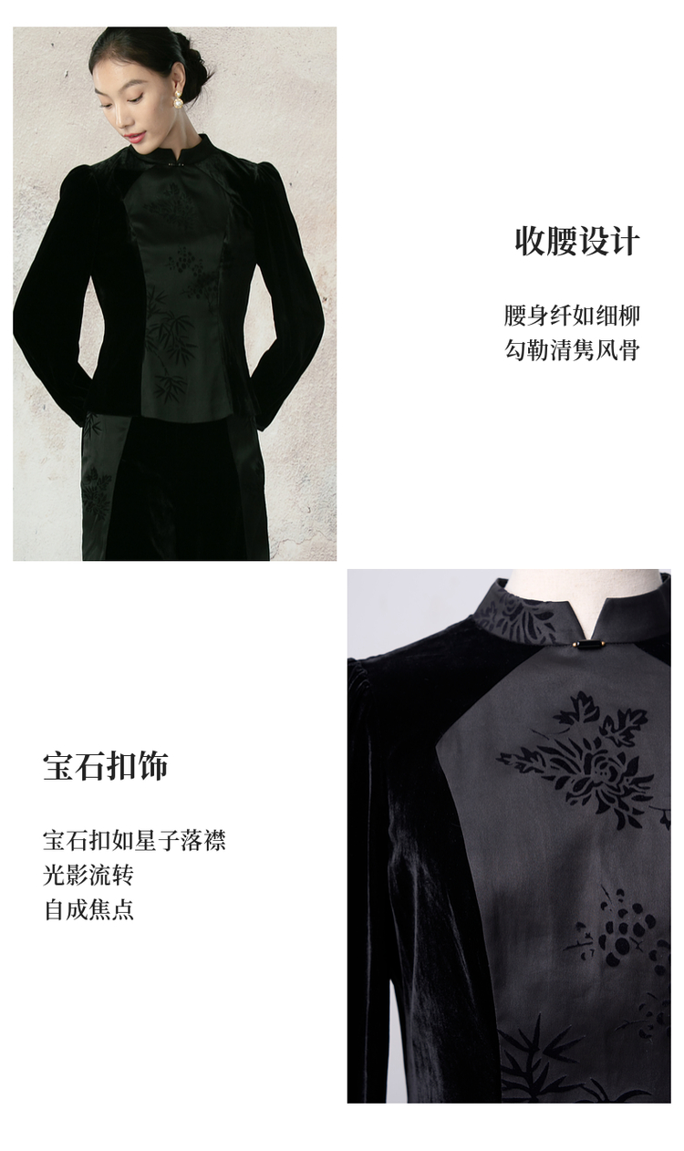 吉祥衣家新中式国风夏新款高端气质显瘦修身黑色女装风瑶玉枝上衣