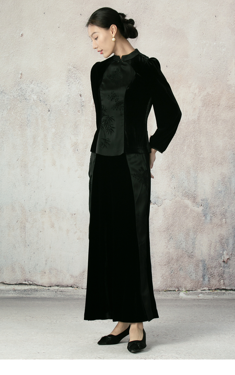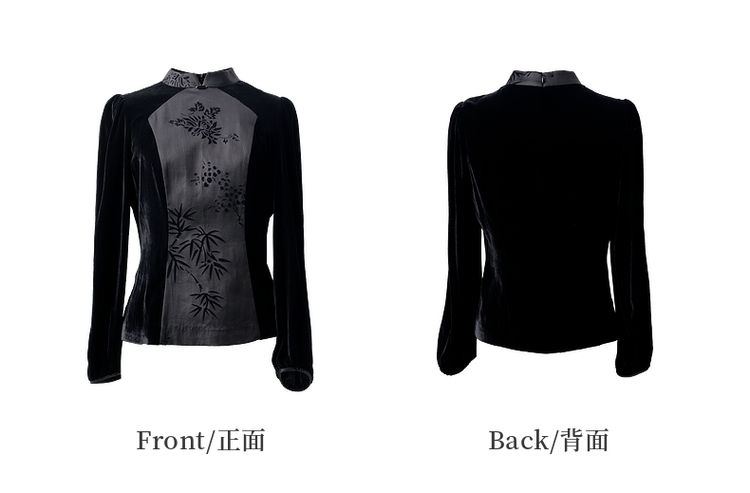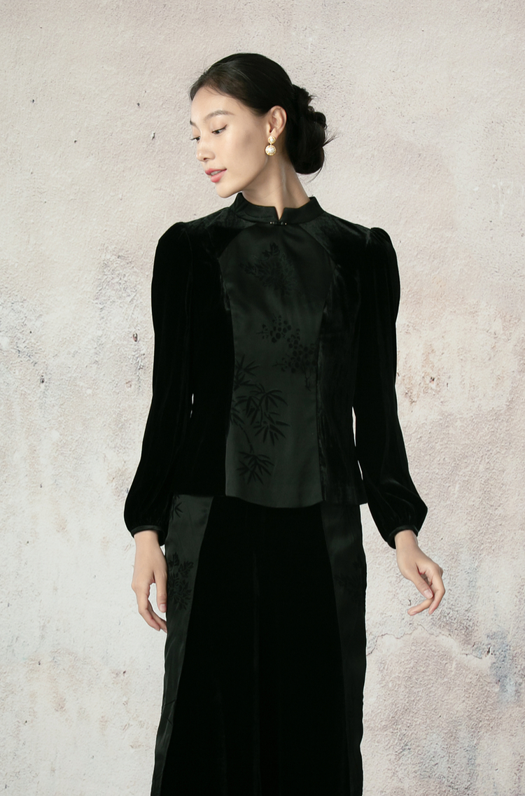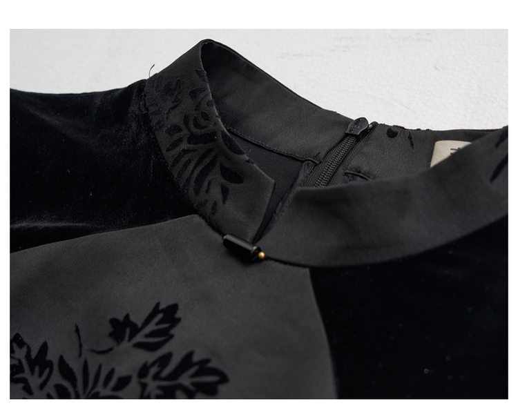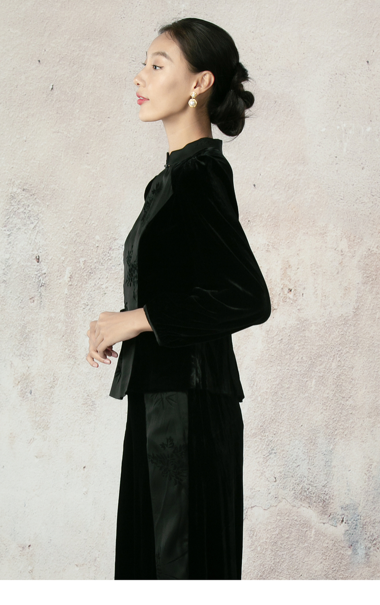 吉祥衣家新中式国风夏新款高端气质显瘦修身黑色女装风瑶玉枝上衣