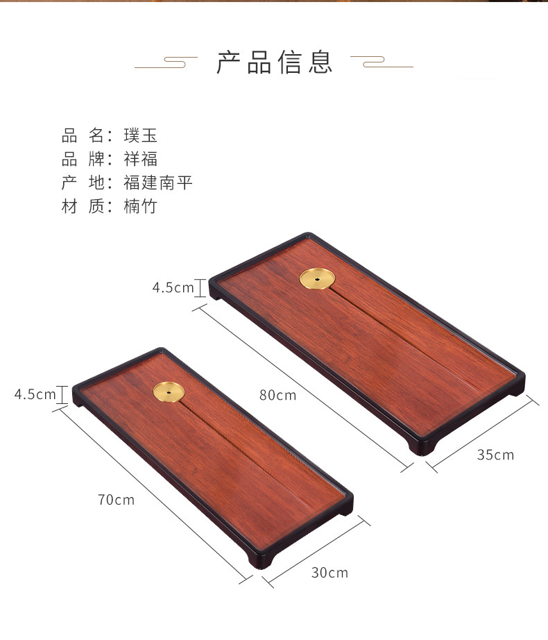 祥福璞玉现代简约高端竹制家用干泡台茶台茶具托盘茶海茶几茶盘