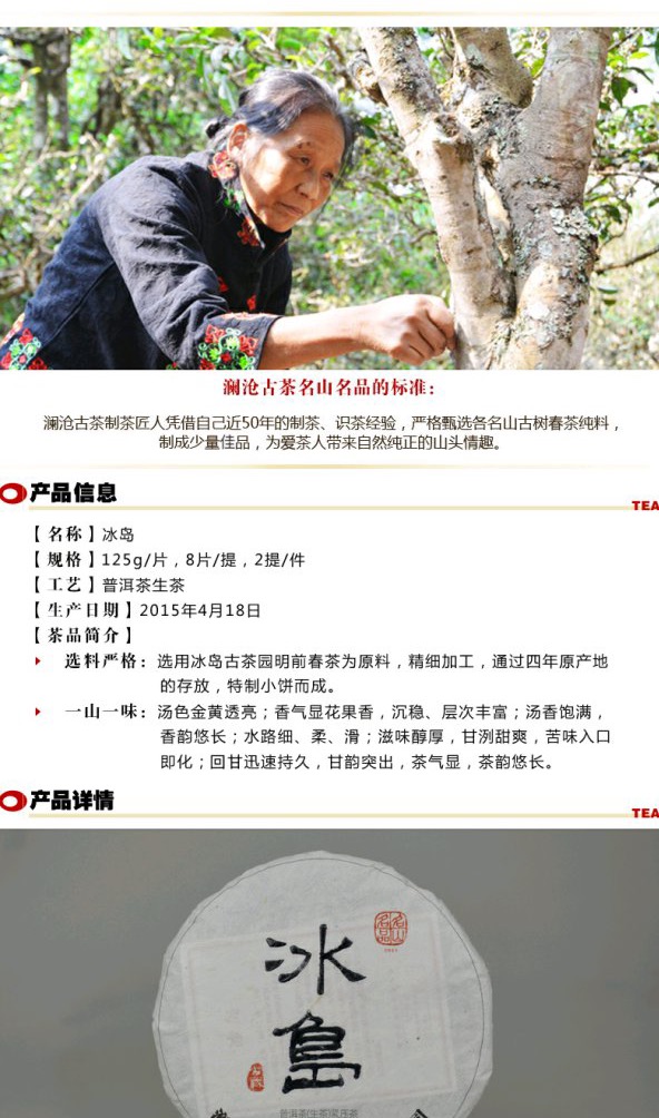 澜沧古茶2015年冰岛小饼普洱茶生茶125g
