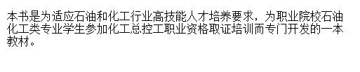 本书是为适应石油和化工行业高技能人才培养要求,为职业院校石油化工类专业学生参加化工总控工职业资格取证培训而专门开发的一本教材。