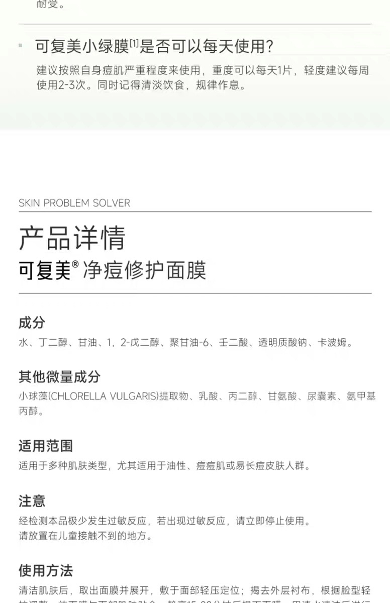【岁末秒杀】可复美-净痘小绿膜修护屏障控油-